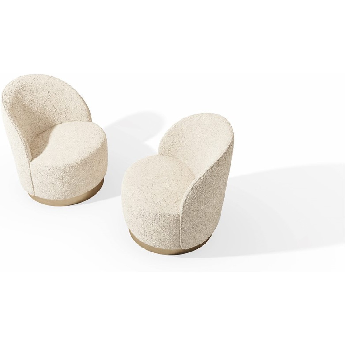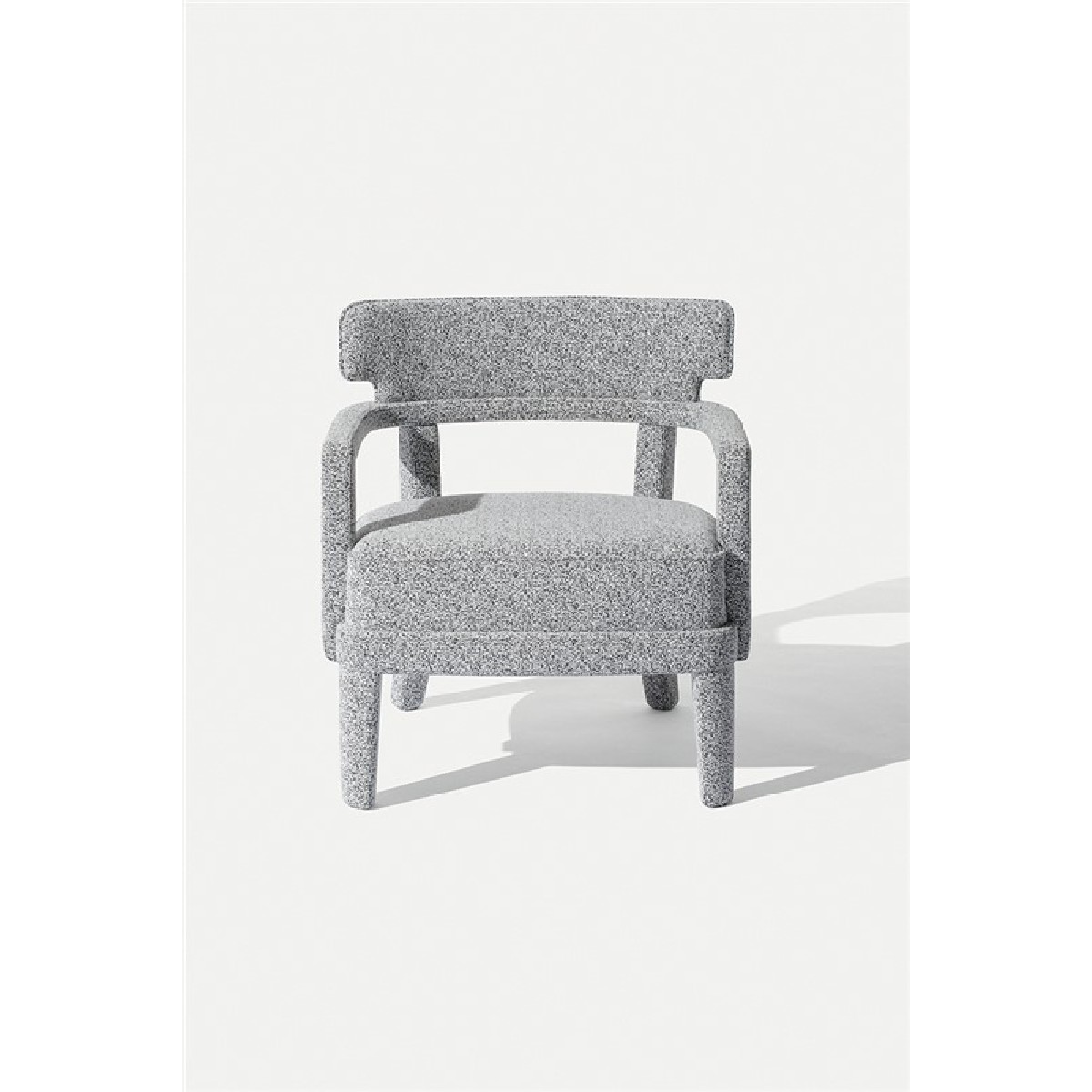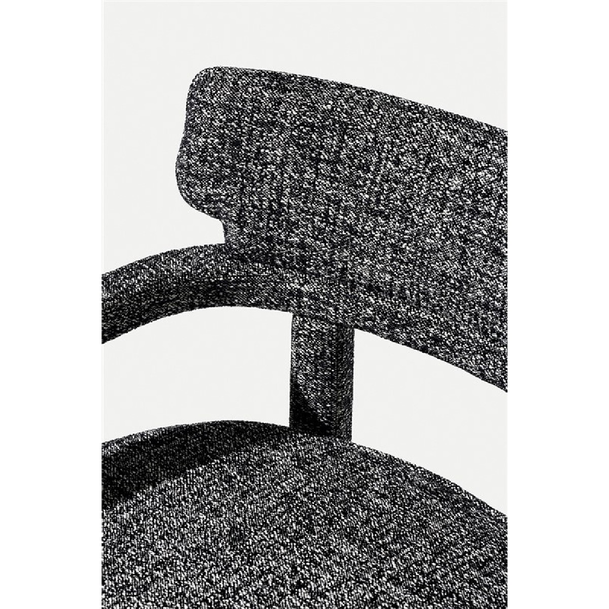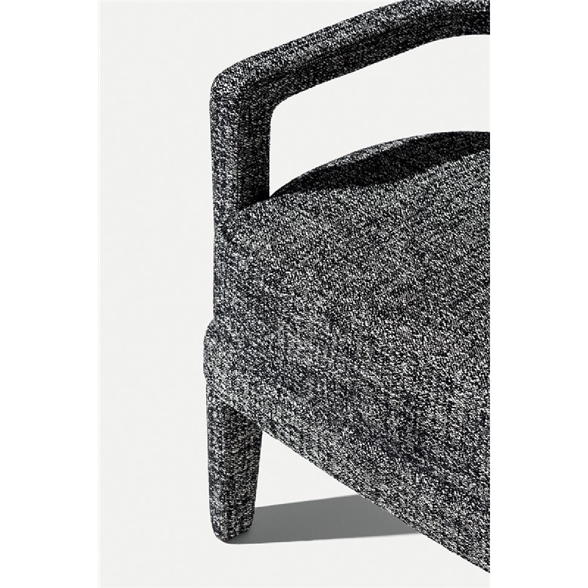 Small armchair with a curved plywood panels back, covering in fabric or leather.
