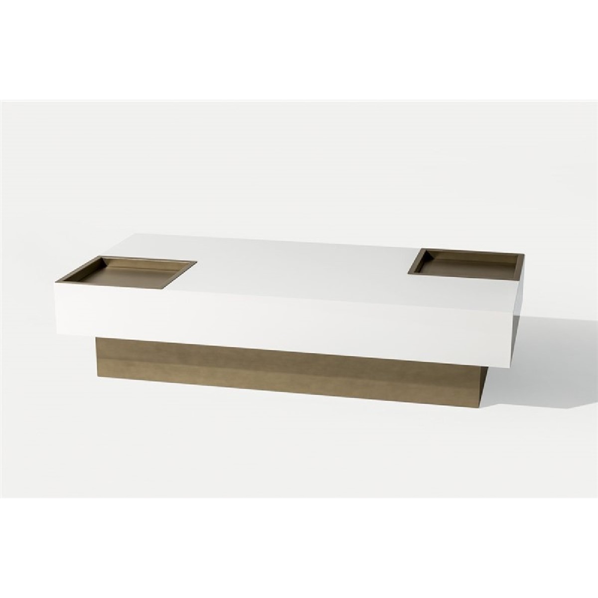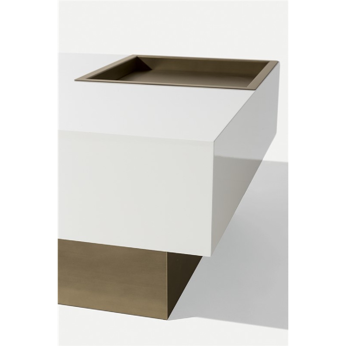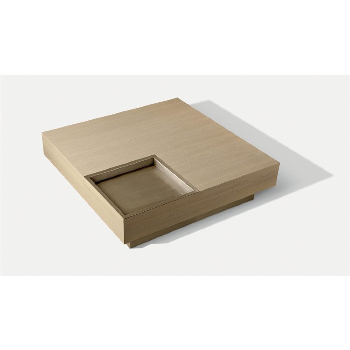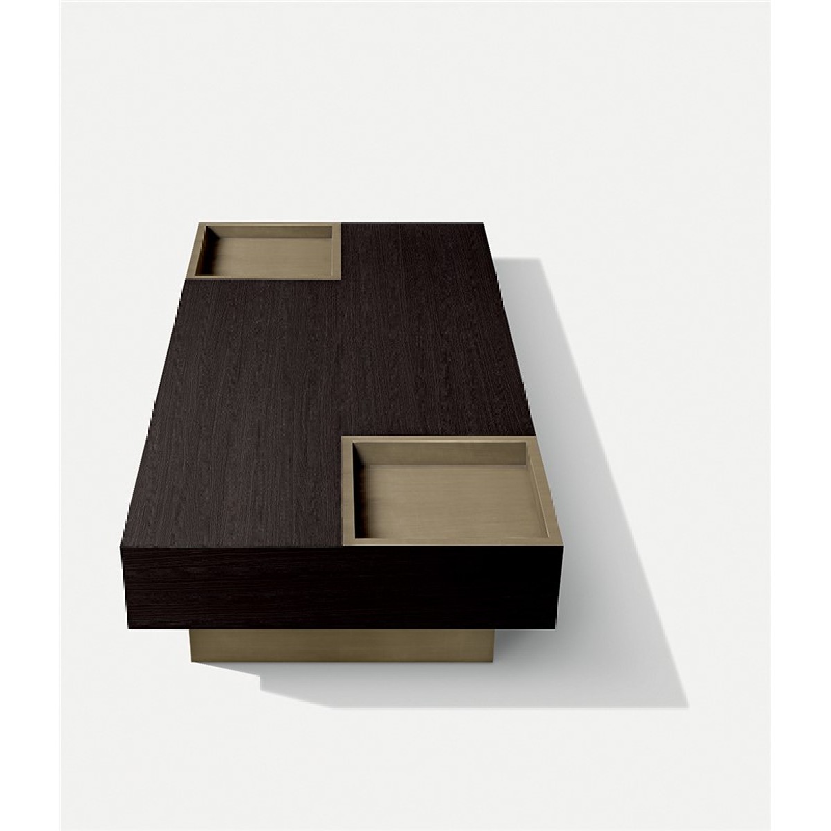 Yves coffee table is available in three sizes. The top consists of a 2,0 cm thick veneered particleboard panel with oak sliced veneer border, on wooden finish version; on lacquered version, it consists of an MDF panel surfaced with melamine paper to be lacquered.