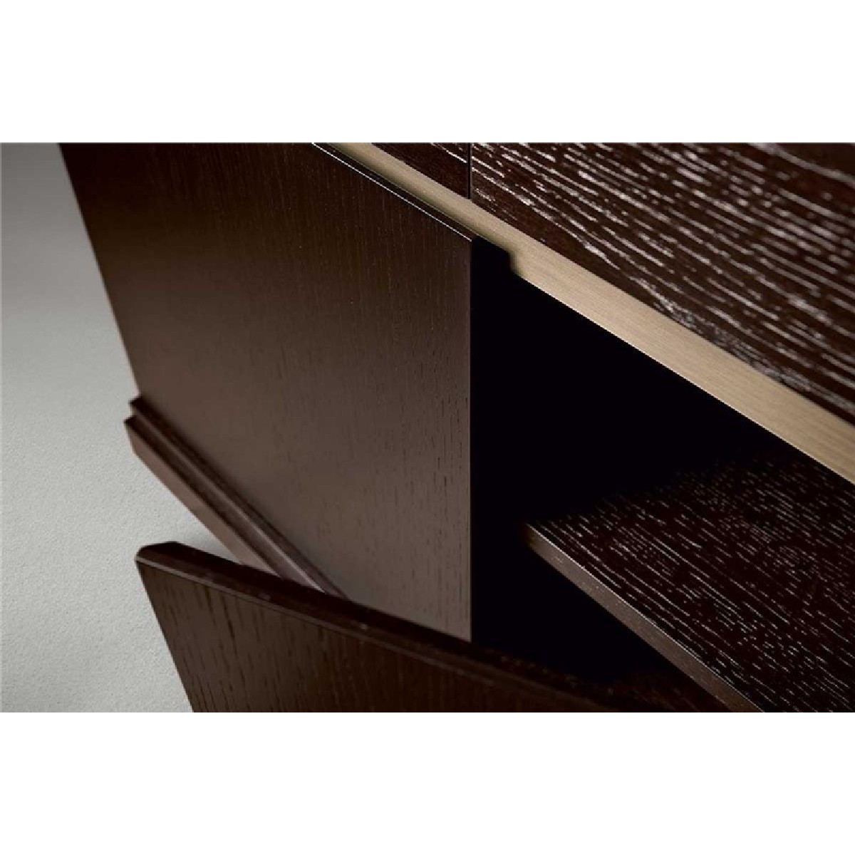 Sides and back panel consist of a particleboard panel covered – for wooden versions – on both the inside and the outside and along the borders with the finest oak-wood sliced veneer.