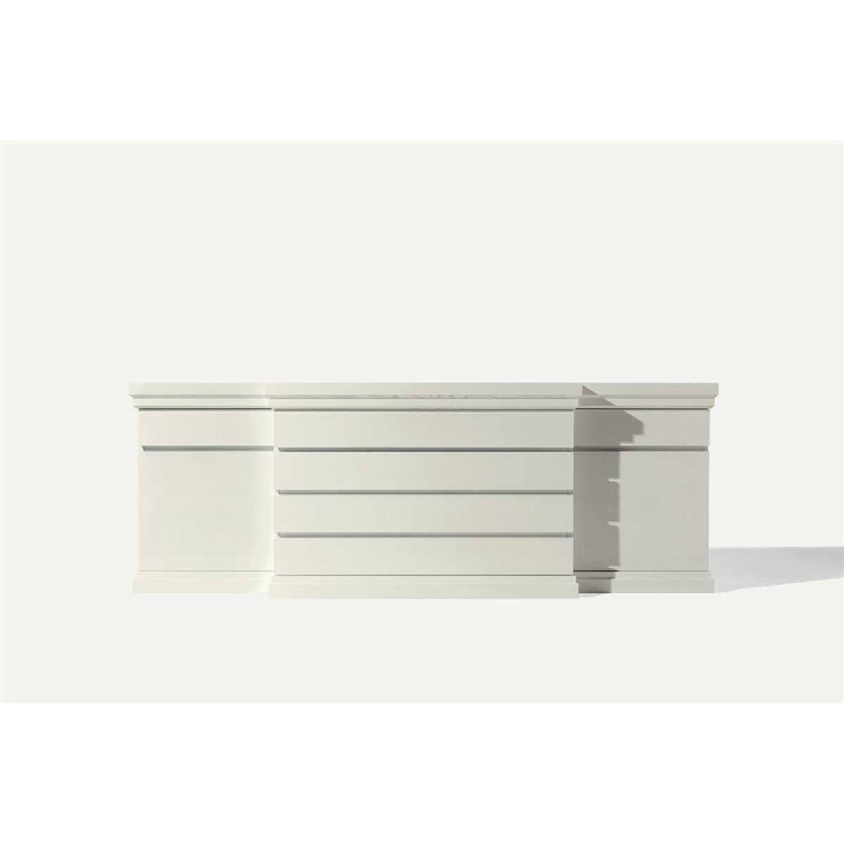 The buffet has four front drawers. Moritz buffet is available with double depth too.