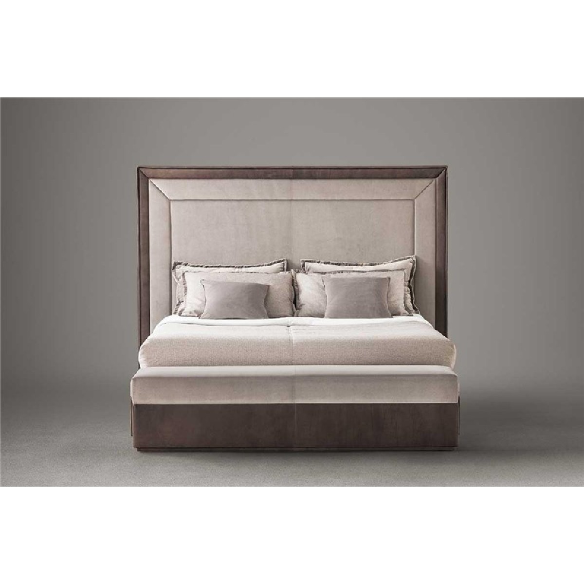 Deluxe edition with bed frame and headboard upholstered in fabric and leather or double leather