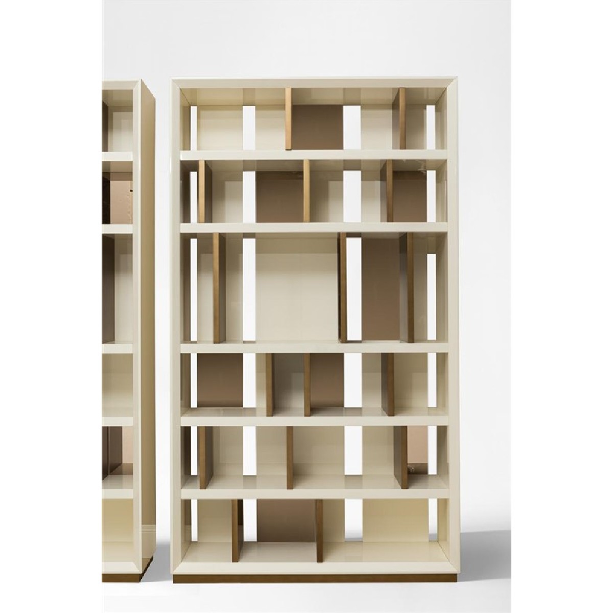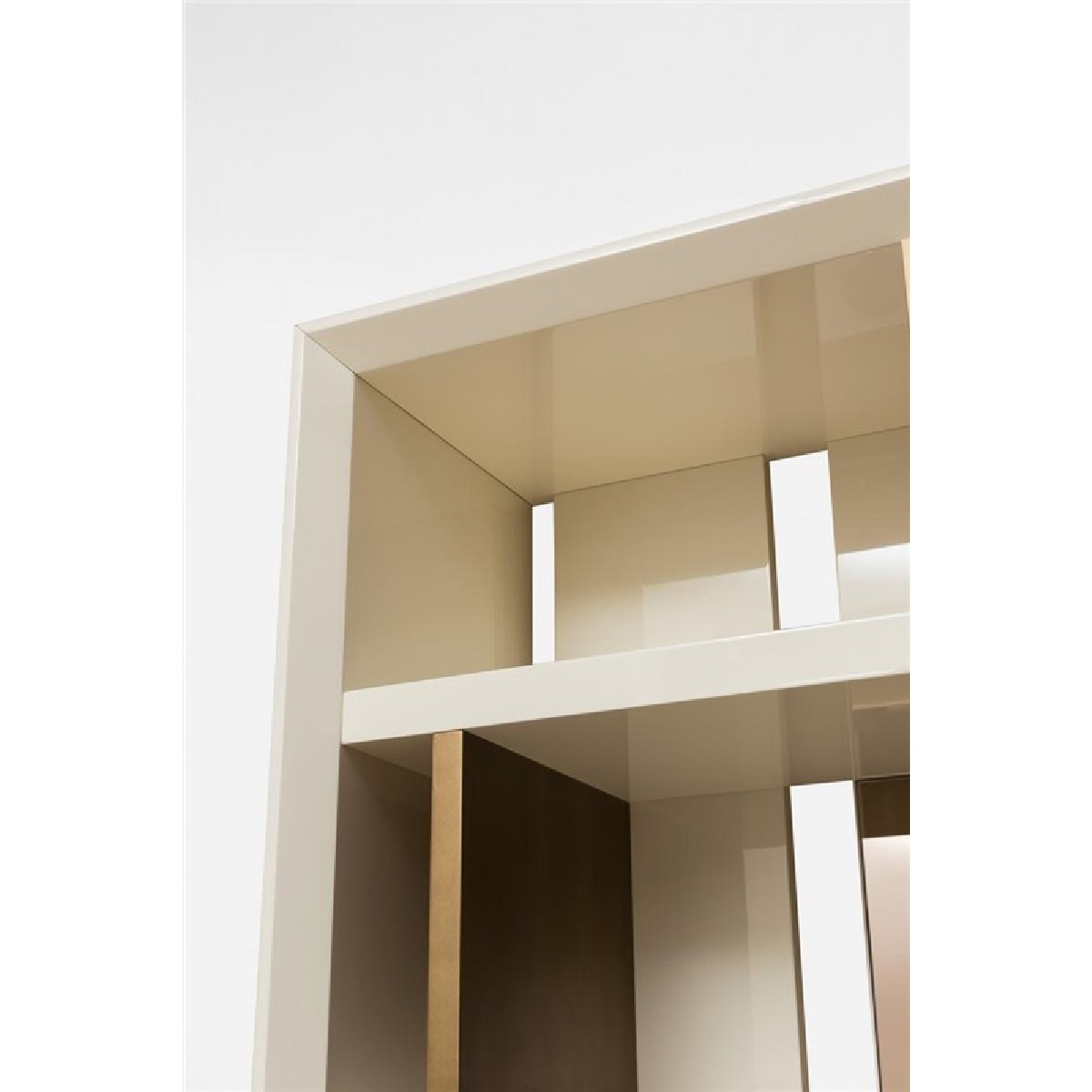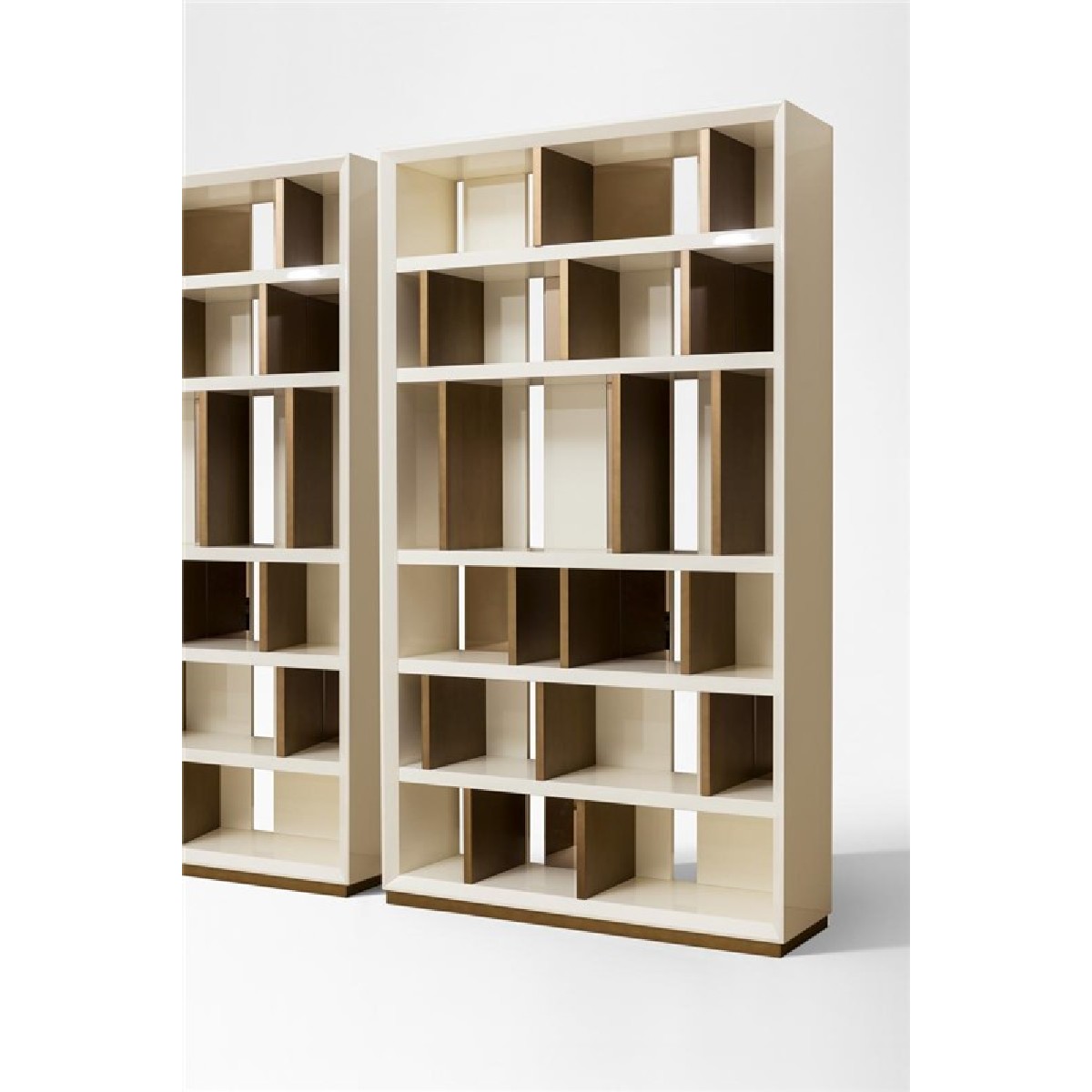 Magritte is an exquisite bookcase whose distinguishing feature is the irregular pattern with which the spaces are arranged. It sports wood supports, back, shelves and dividers with a bronze finish. The bookshelf is composed of a single module, which measures L120xH211xP35 cm. It represents a piece of furniture which is equally at home in living areas of varying styles, from the classical to the contemporary.