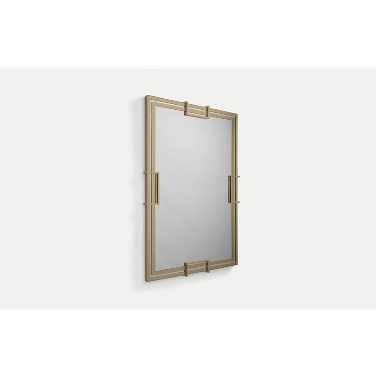 Valentino is a mirror with a simple frame but strong identity inspired by a geometric Art Deco style, it has a double metal frame decorated by 10×10 mm thick tube. The finishes of the metal structure are in gold or chrome.