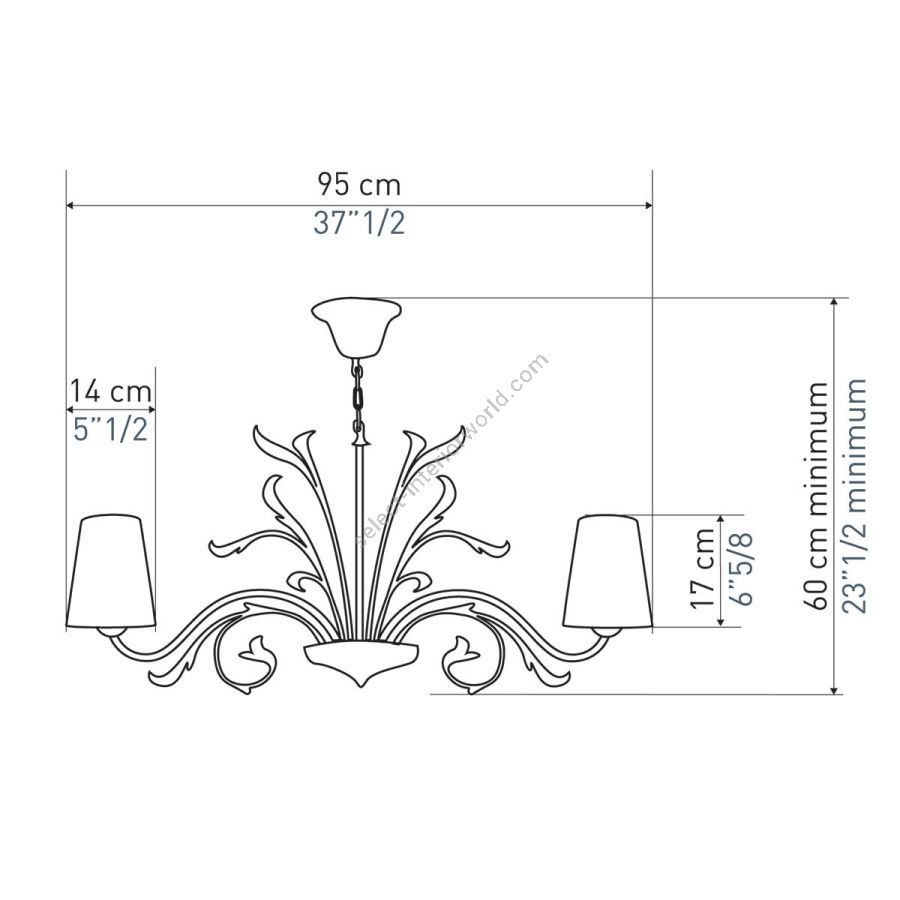 Height: 60 cm minimum, Width: 95 cm, Maximum: 8 x 40 w