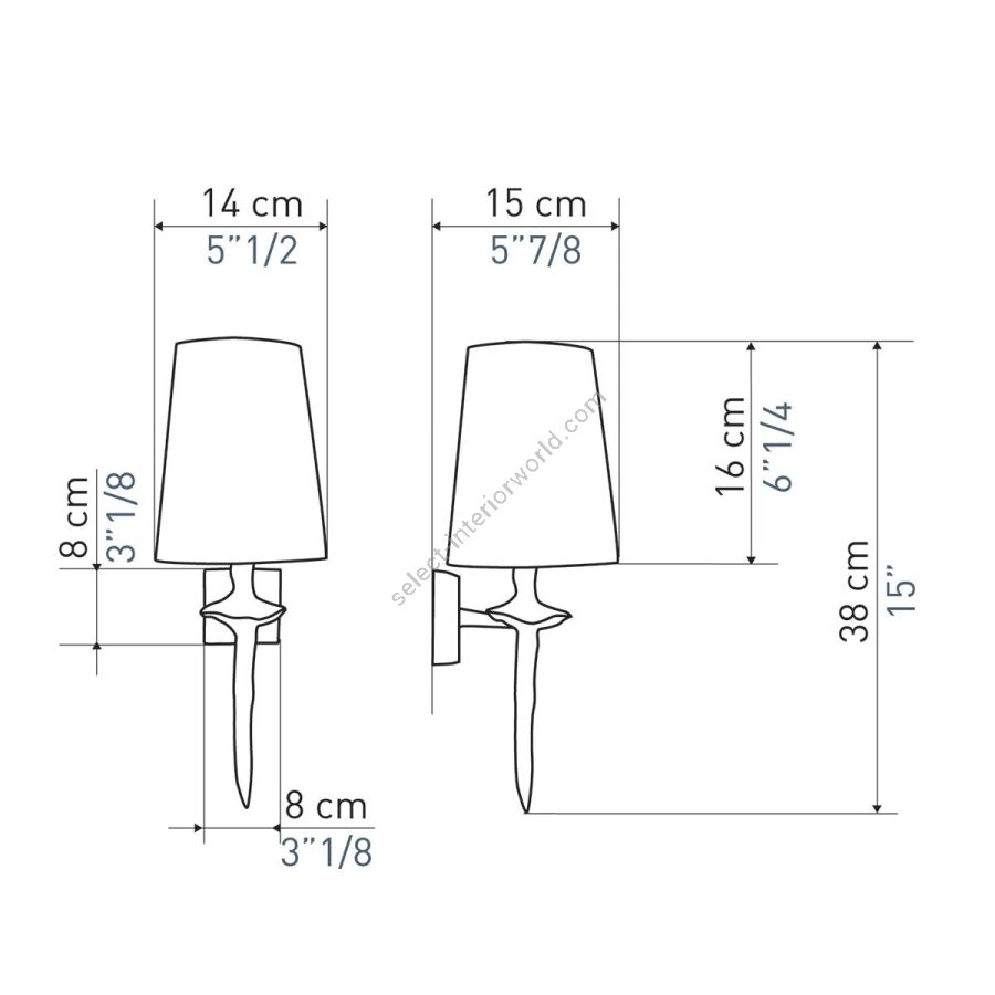 Height: 38 cm, Width: 14 cm, Projection: 15 cm, Maximum: 100 w