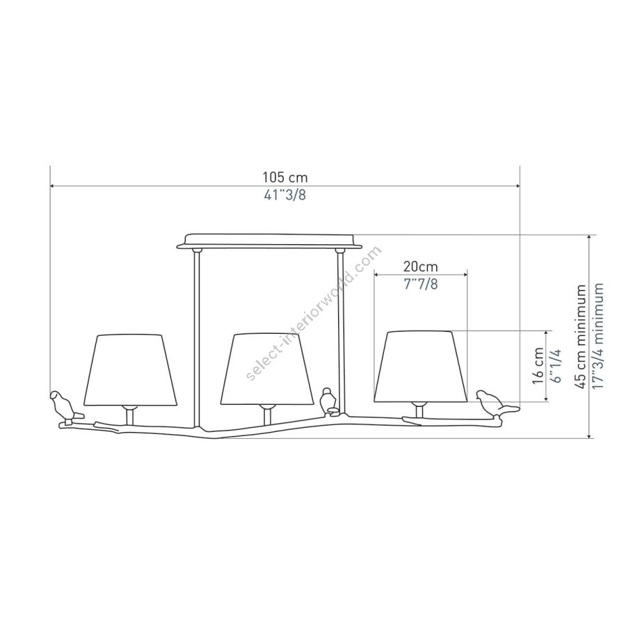 Width: 105 cm, Maximum: 3 x 100 w, Les Abat-jours peuvent être fabriqués dans 18 coloris au choix, The colour for the shades can be chosen out to 18 different hues