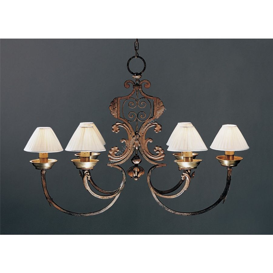 Forged iron chandelier with fabric shade. Light: 6L. x 60W E27