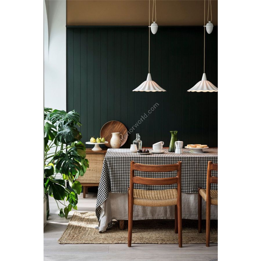 The Christie 36 Rise & Fall Pendant represents an evolution of our beloved Christie pendant. Slightly reduced in diameter and with a steeper fall than the classic Christie shade, it casts a more focussed beam immediately below the fixture. Inspired by gently rolling ocean waves, the handmade bone china shade’s corrugated outline adds a playful focal point in any room.