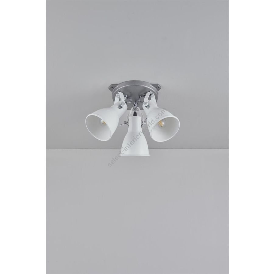 A trio of small Stirrup lights create the attractive, industrial style Stirrup Triple Ceiling Light. Hand-spun from aluminium, the lights are available in natural aluminium, or powder coated in black or white; all are finished with a complementary black & white cotton braided cable.