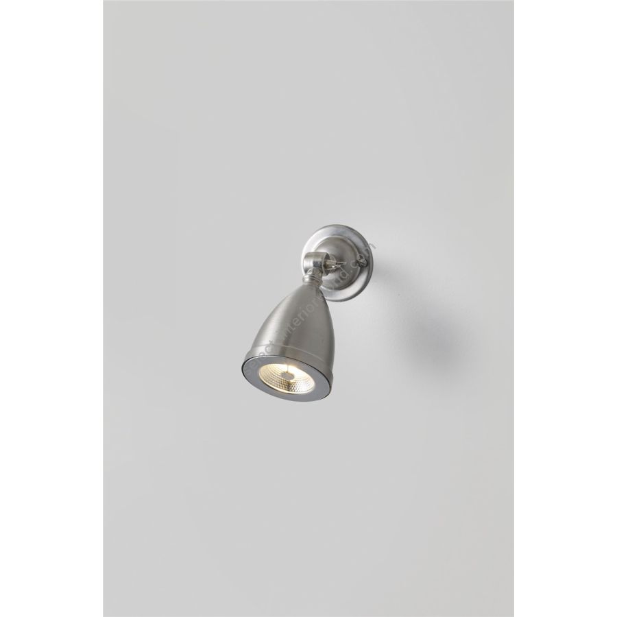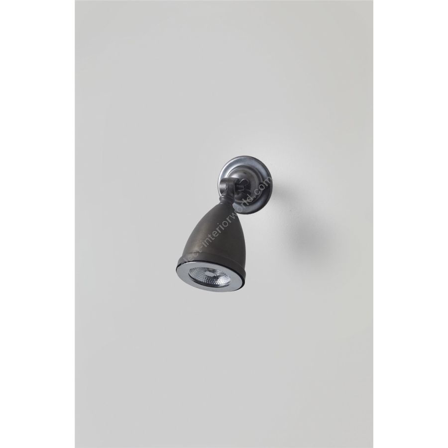 A shaded low voltage Spotlight, with a swivel base and adjustable knuckle joint. Available in nickel plated or weathered brass. The anti glare bar over the lamp makes this a discreet source of spot lighting. A beam angle of 8° spot, 20W. This product requires an additional low voltage halogen transformer to connect to a standard mains voltage circuit, see 'Accessories' for further details.