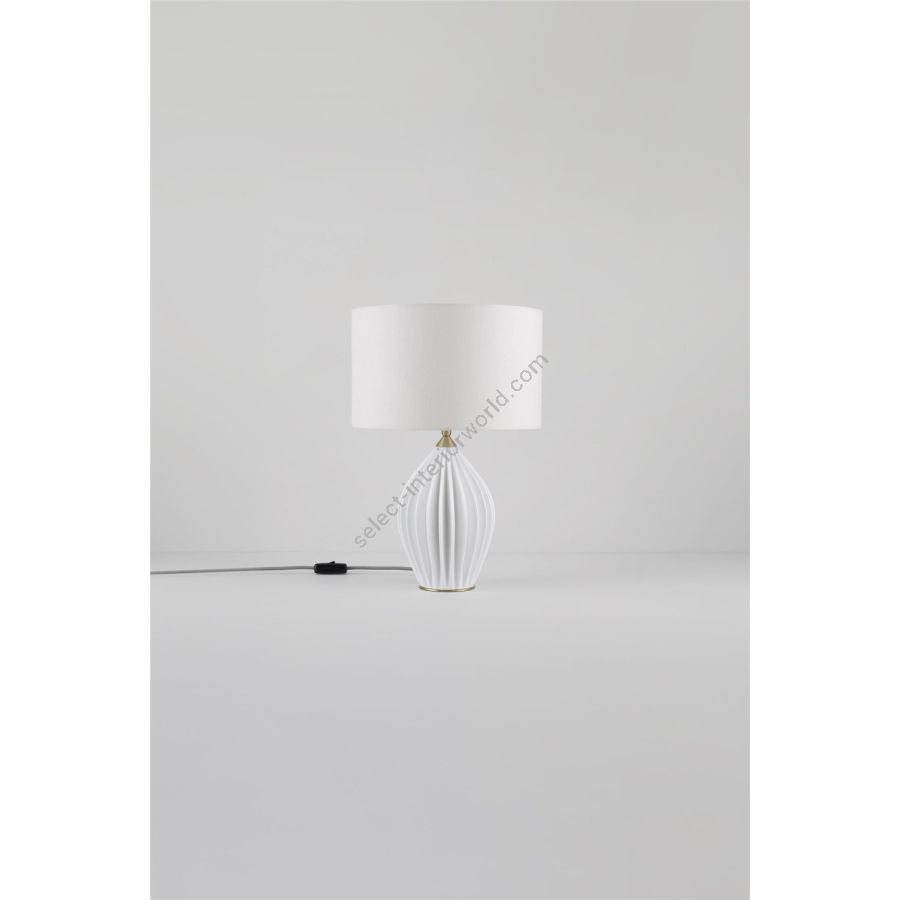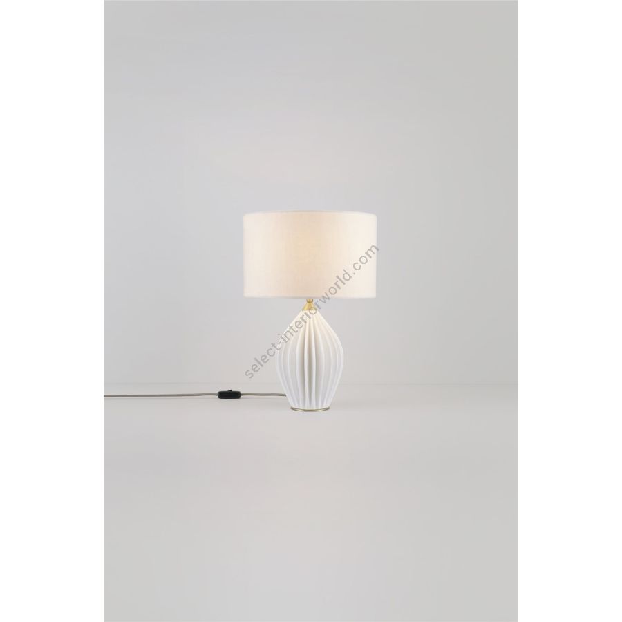 The Fin Queen Table Light marks a new direction for Original BTC, combining our trademark bone china with the addition of a drum shade. The ivory linen shade casts a soft, diffused light, creating beautiful shadows on the intricate hand slip-cast base. The Fin is finished with lacquered, brushed solid brass details and signature cotton braided cable in a pale grey, while the shade sits on an angleable ball and socket to facilitate reading.