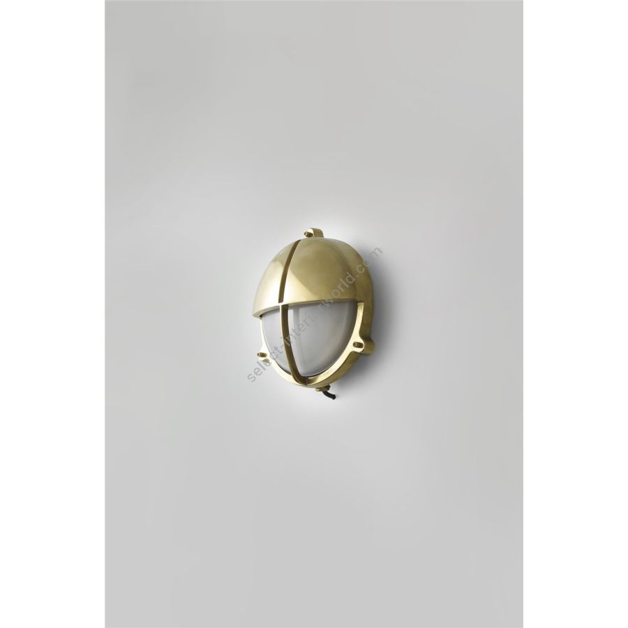 Die-cast bulkhead light in natural brass, unlacquered with frosted diffusers and eyelid shield, secured with socket head screws. Also available in weathered brass and chrome plated finishes and two different sizes. Glanded surface cable entry.