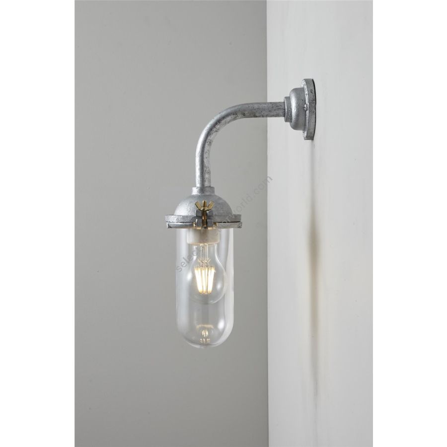 An Exterior Bracket Light with a simple ring that holds the clear or frosted glass fitting. This beautifully simple wall light is available in either galvanised cast iron or sandblasted bronze, and with a canted or right angle arm.