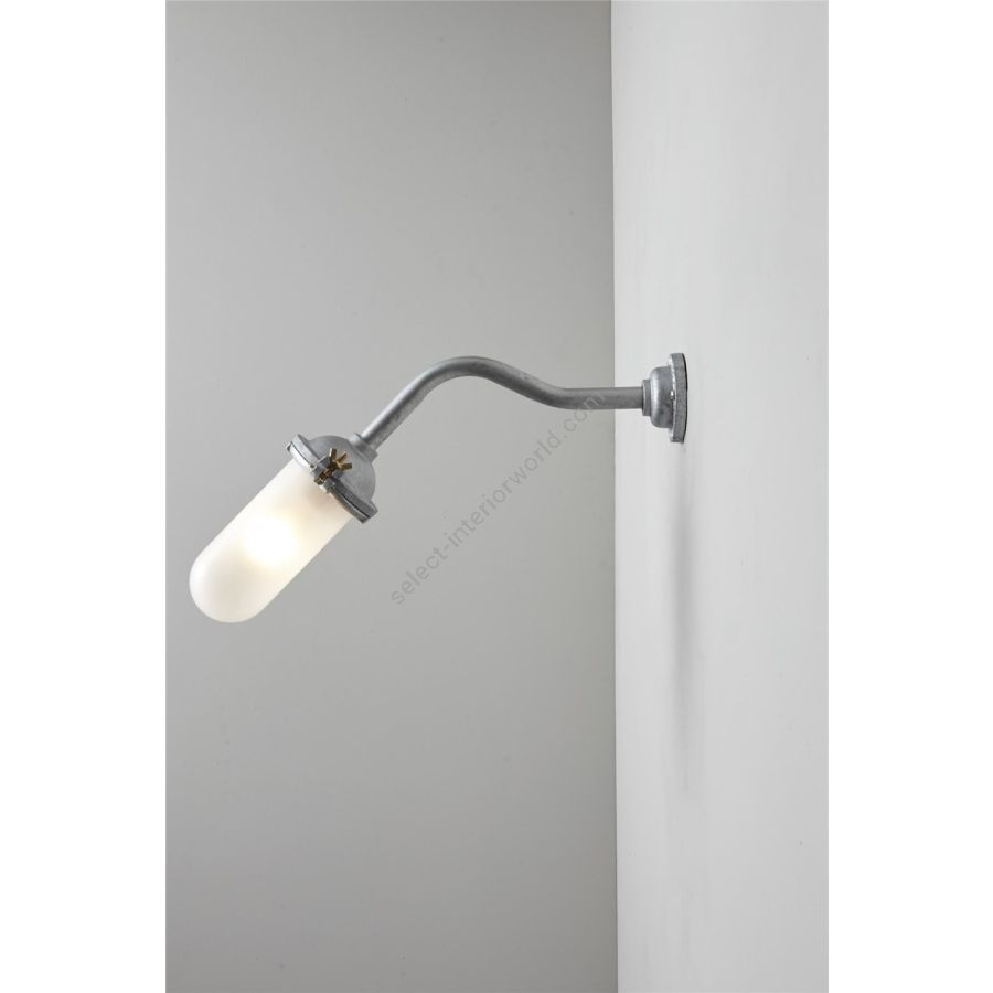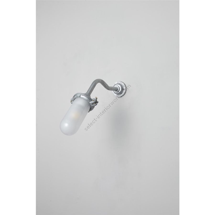 An Exterior Bracket Light with a simple ring that holds the clear or frosted glass fitting. This beautifully simple wall light is available in either galvanised cast iron or sandblasted bronze, and with a canted or right angle arm.