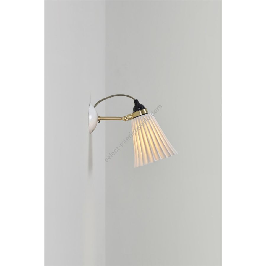 The handmade Hector Pleat Medium Wall Light beautifully marries fine bone china with satin brass accents. Its iconic pleated shade exudes elegance, while the glossy bone china finish is gracefully complemented by the satin brass detailing. With its adjustable clamp, you can direct the light precisely where it's desired. The design is enhanced by our signature cotton braided cable in a calm grey hue.