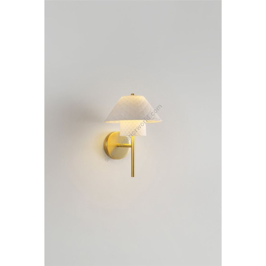 Continuing the Oxford collection comes the simple and elegant wall light. Once more the luxurious paired shades with their quilted texture are mounted upon a brushed brass backplate. Emitting a warm, atmospheric glow, the shades come to life when switched on, as the light interacts with crisp lines running across the textured surface.