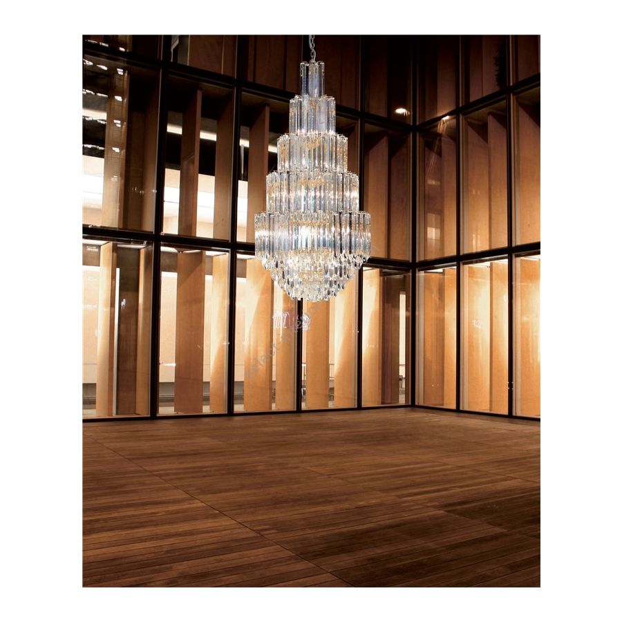 Kronleuchter mit modernem und zeitgenössischem Design, der sich perfekt in folgende Wohnumgebungen einfügt: Treppenhäuser, Lofts und alle Räume mit großer Höhe.