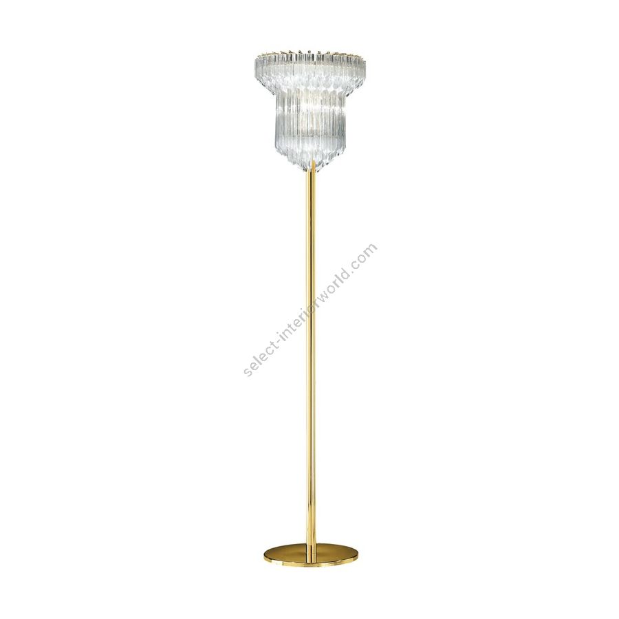 Floor lamp with crystal trihedrals or trihedrals and quadrihedrals in murano glass, available in many colours and a frame in 24 karat polished gold or chrome.