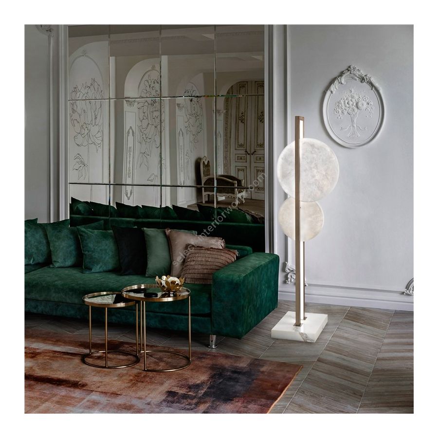 Floor lamp with a refined and contemporary design that perfectly adapt to the following home environments: kitchen, living room, lounge and bedroom available with alabaster lampshade
