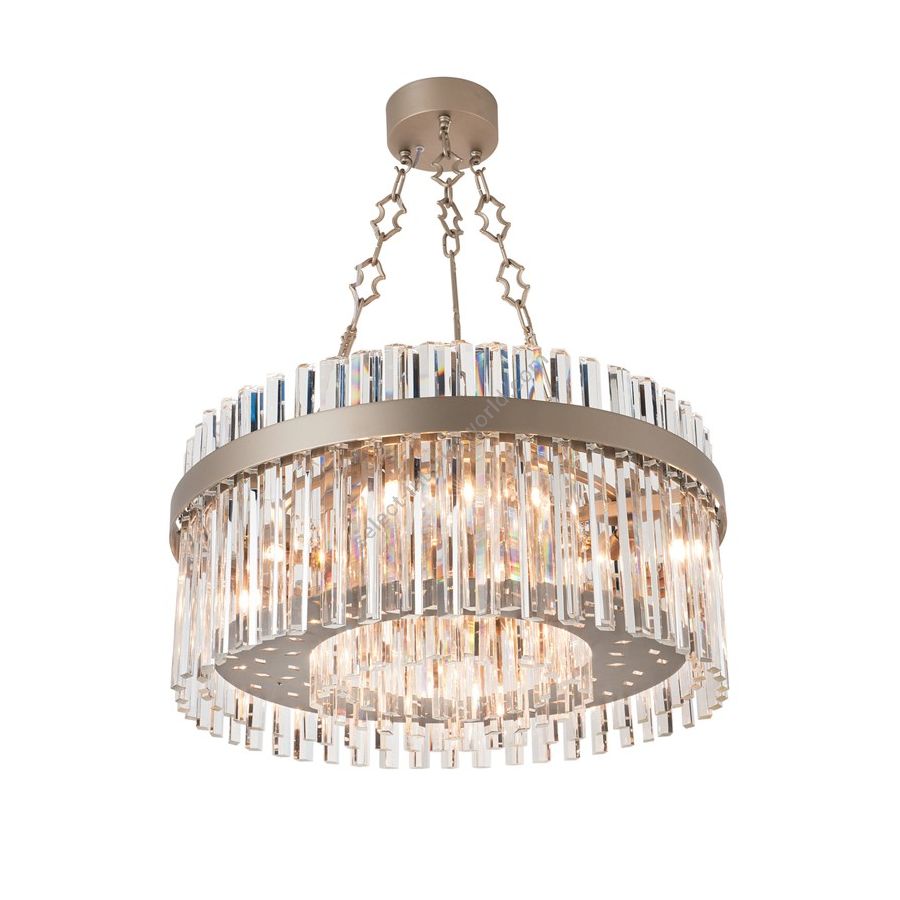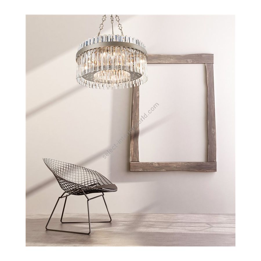 Luxuriöser Kronleuchter aus optischem Kristall und in den Ausführungen Eisengrau, Taubengrau oder poliertem Chrom. Eleganter und raffinierter Wohnzimmer-Kronleuchter in verschiedenen Größen.