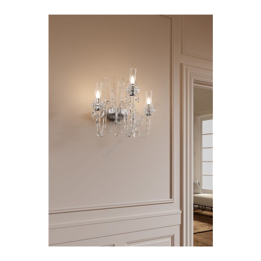 Wall light with wide arms and murano blown glass lampshade. Metal structure with chrome or polished gold finish. Shop online now!