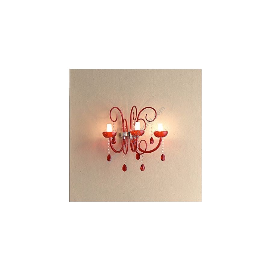Wall lamp with large arms and croziers in hand-blown murano glass and crystal pendants.