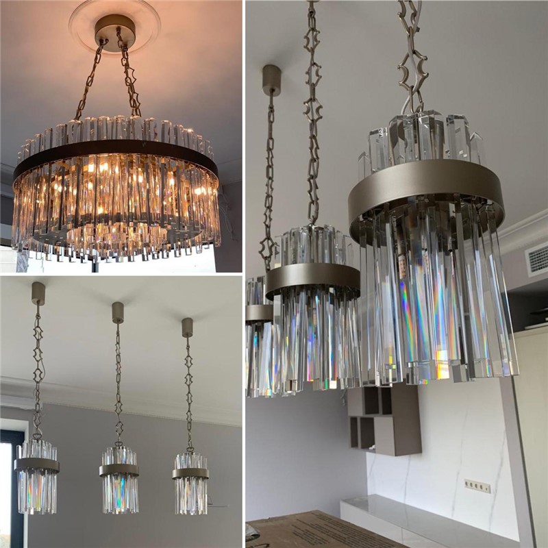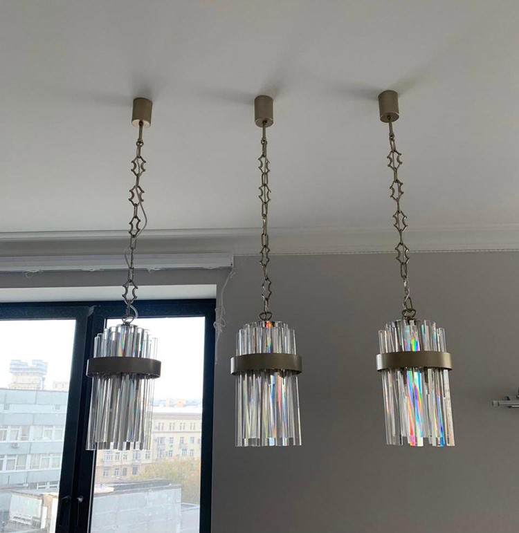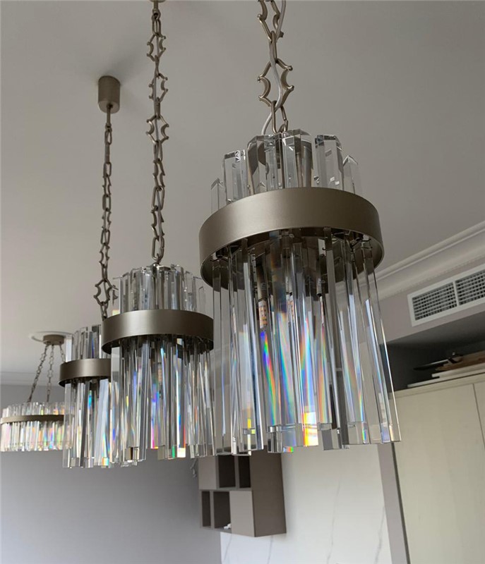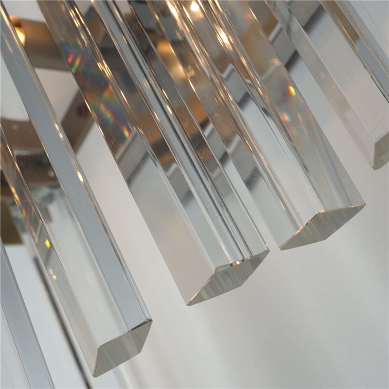 Optical crystal rods with a rhomboidal section and a perfect straight cut, for an impeccable effect of pure light and brightness.