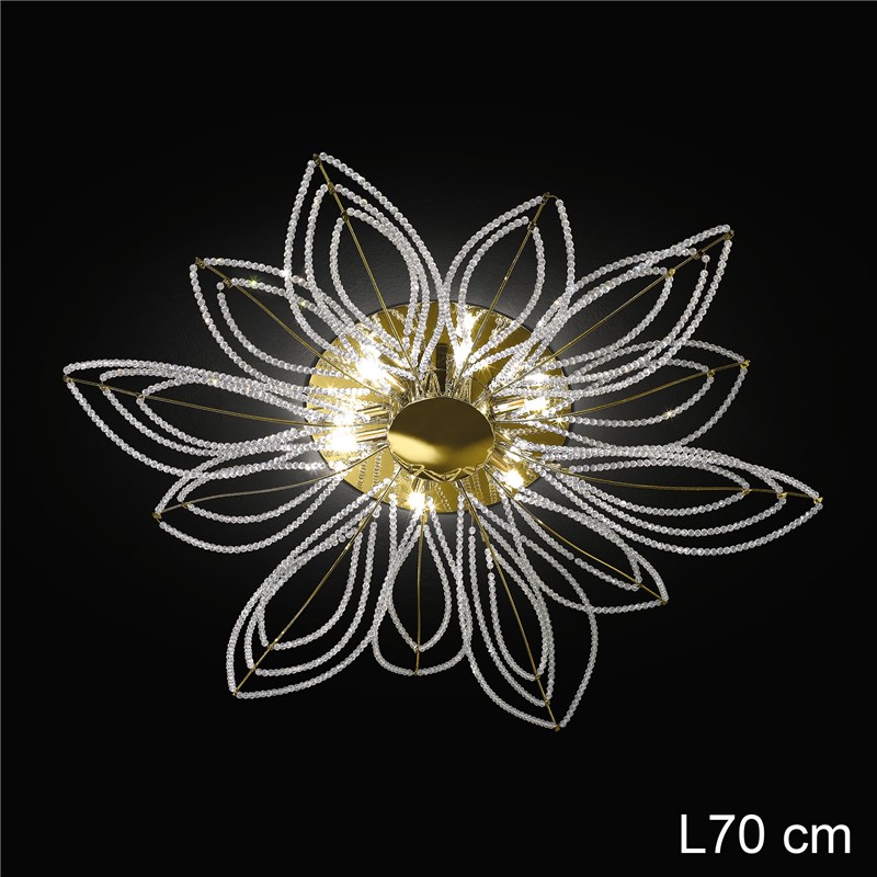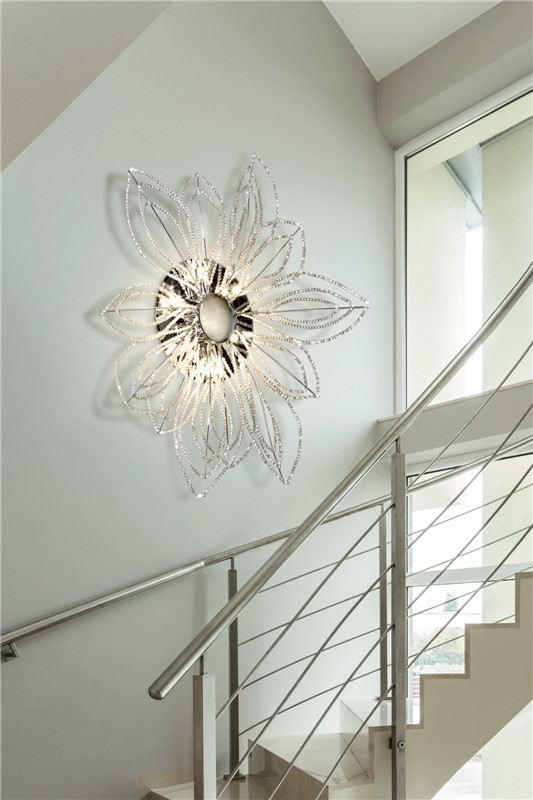 Wall light with decorative petals in the purest crystal and metal structure in two different finishes. Find out more and buy online