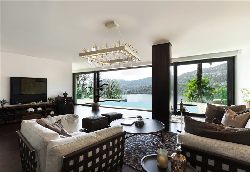 The metal frame, which is very minimal and discreet to emphasise the glass at its best, is refined with a moka or dove gray finish.