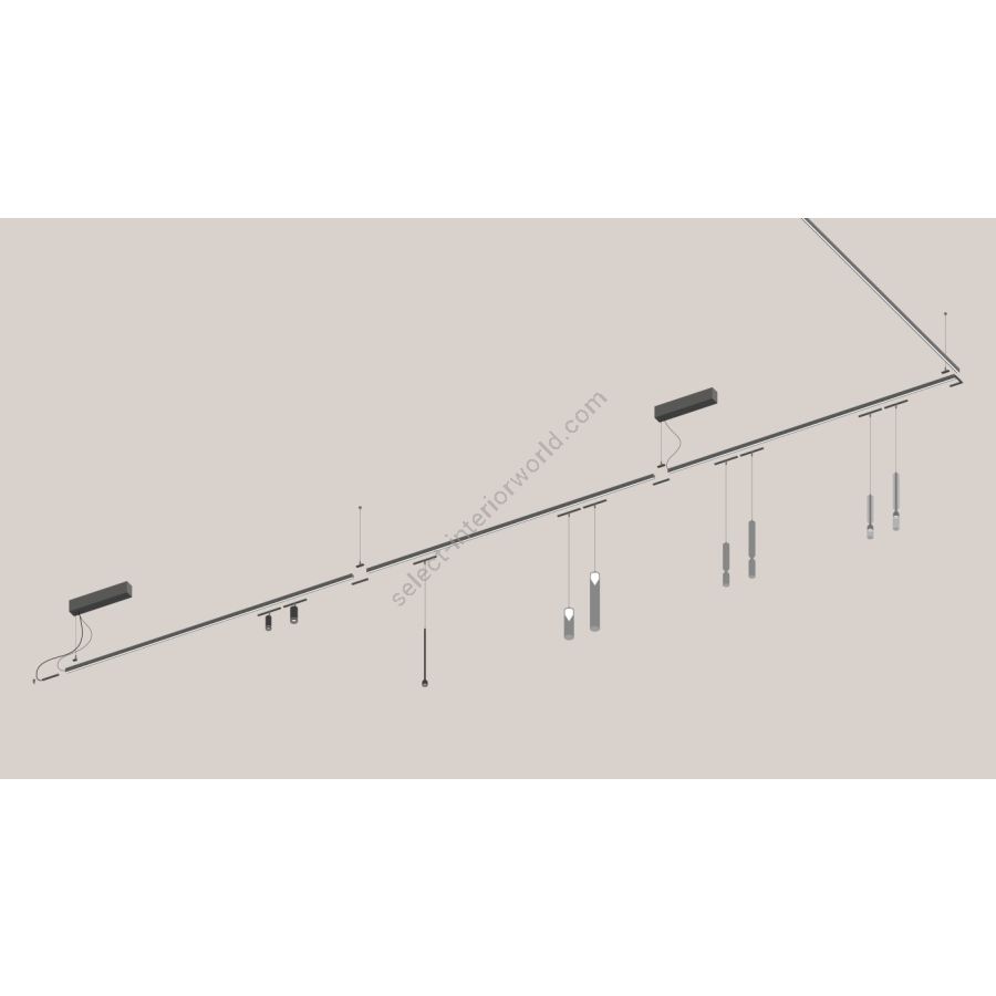 On this luminous track, 48V spots and pendants can be freely integrated – technical or decorative solutions that blend seamlessly to create customized compositions, either suspended or ceiling-mounted.