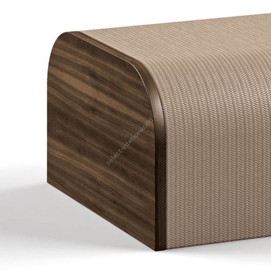 Höflichkeitstisch mit Holzstruktur und Lederplatte. Seitenelemente aus Eukalyptus-Furniersperrholz. Zentralelement aus gebogenem Sperrholz mit bedrucktem Leder.