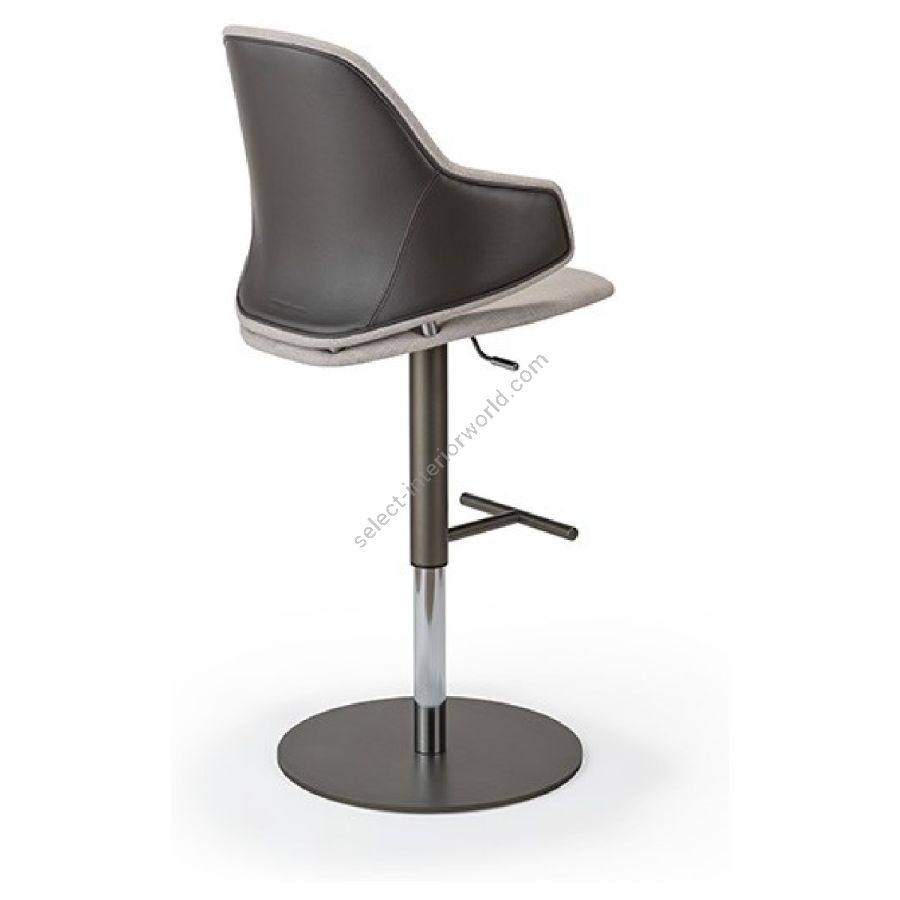Hocker mit Schale aus Harz und Holz mit Bezug aus Leder oder Stoff. Innenrücken mit Steppung. Verstellbare Metallbasis in Bronze 100M, Messing 104M, dunklem Messing 105M und Titan 101M.