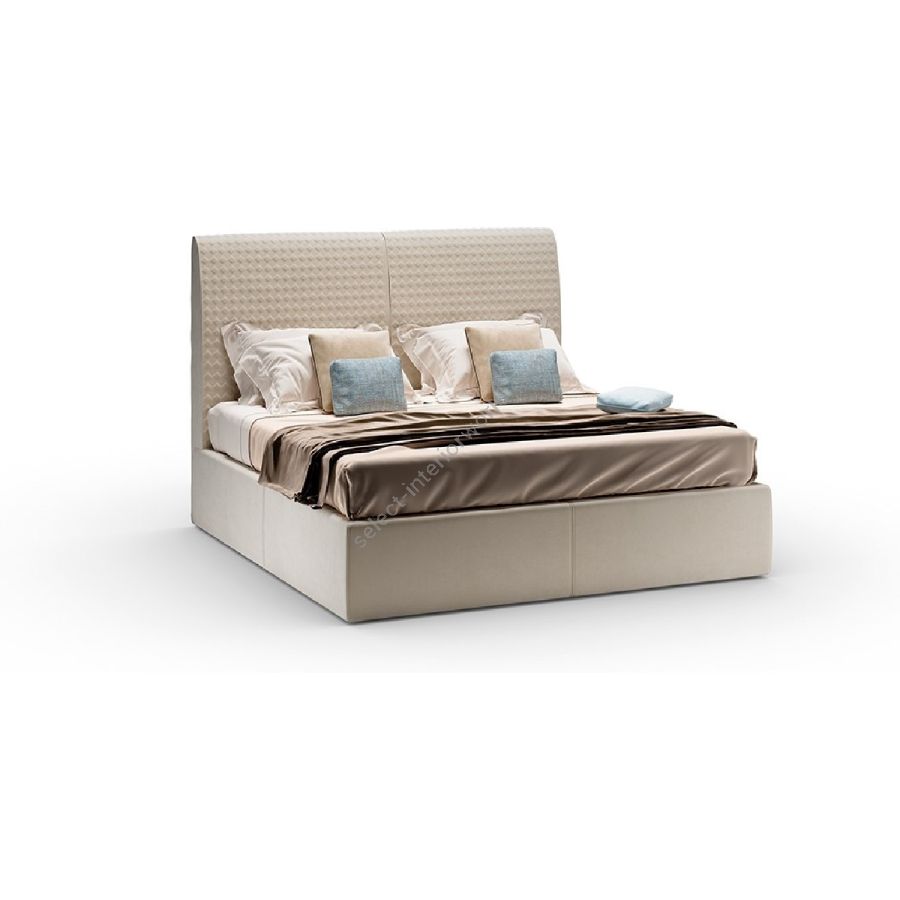 Bett mit gepolstertem Kopfteil und Seitenteilen, bezogen mit Stoff oder Leder. Kopfteil mit Steppung.