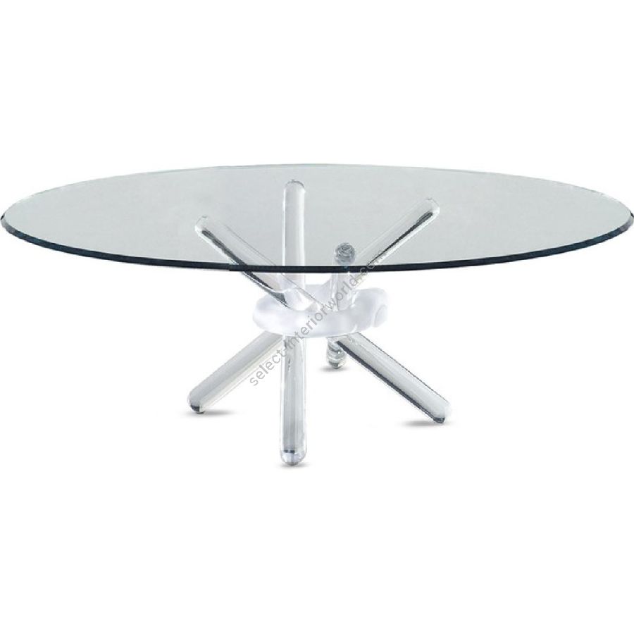 Couchtisch mit Untergestell aus blauem, grünem, rotem, transparentem oder weißem sandgestrahltem Muranoglas. Ring aus weißem, blauem oder grünem sandgestrahltem Glas. Untergestell auch aus geripptem transparentem, teefarbenem oder goldenem Muranoglas oder in Rugiada-Ausführung erhältlich. Glasplatte 12 mm stark.