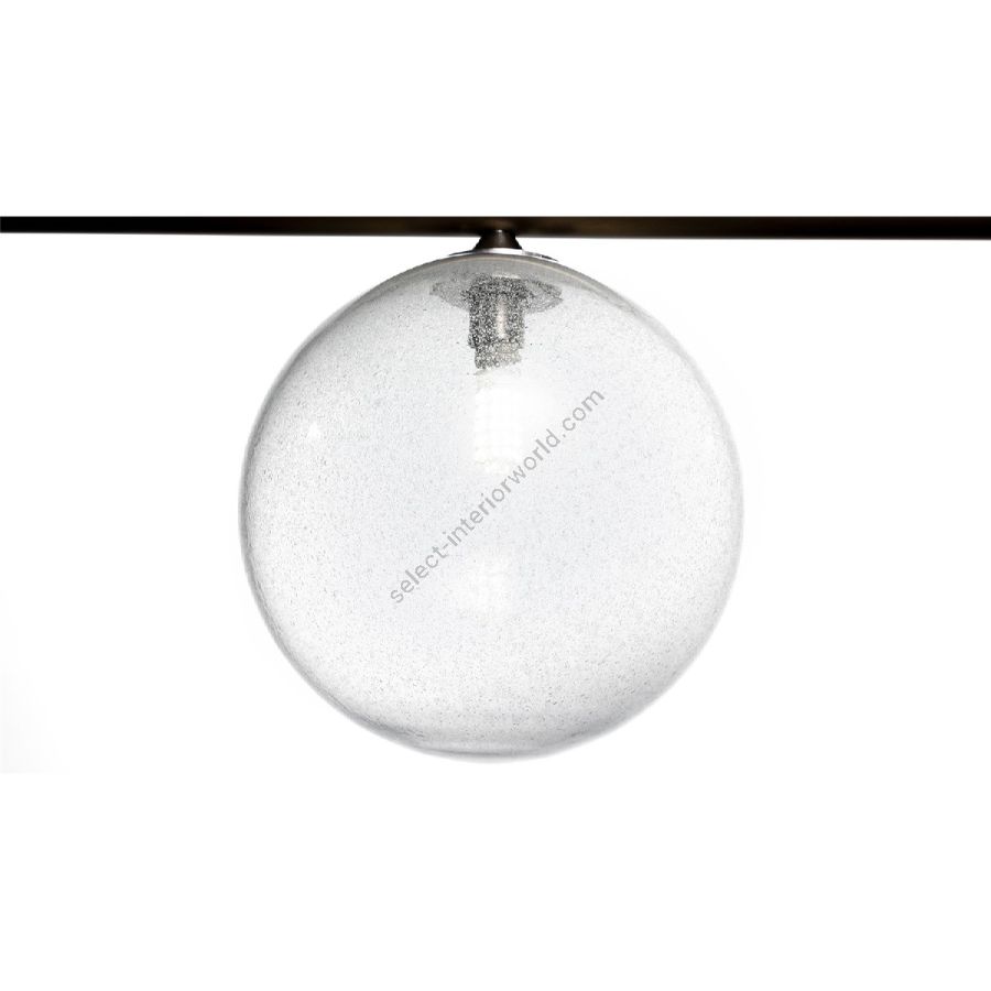 Pendelleuchte mit Metallstruktur in Bronzeausführung. Kugel aus Borosilikatglas in den Farben Silber, Bronze, Kupfer und Gold mit Sputter-Finish oder in Pùlega-Ausführung.