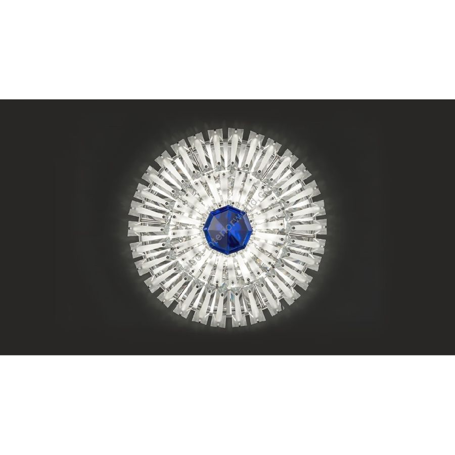 Wandleuchte mit Rahmen aus poliertem Metall und Prismen aus extra klarem, geätztem Glas. Zentraler Diamant in den Farben Rot, Blau, Violett, Bronze und Rauch erhältlich. LED-Beleuchtungssystem