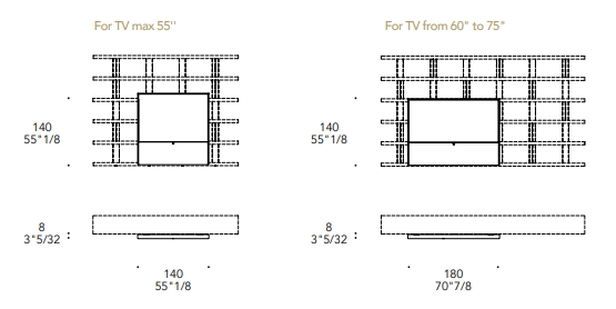 Modulares ineinander greifendes Bücherregal mit Trennwänden aus Rauchglas oder Bronzeglas, Stärke 10 mm, und Holzregalen in Bronzeoptik oder satiniertem Metall. Schiebetür/TV-Behälter aus dunkelgrauem Glas. Metallrahmen in Bronzeoptik (100M). Lautsprecherband aus schwarzem Lycra.