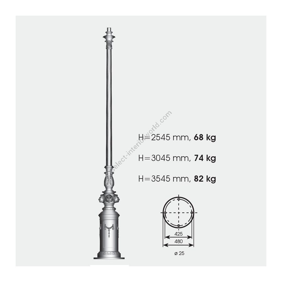 Diese zweifarbige Pfostenleuchte wurde von Robers (Deutschland) als Kombination der beliebtesten Stile - Victorian und Classic - entworfen. Sie sind an der Form der Schattierungen und der Dekoration der Säule zu erkennen. Diese besonders hohe Pfostenlampe sorgt für ein kraftvolles Licht, das gleichzeitig als majestätische Dekoration des Gartens oder der Auffahrt dient. Seine Säule hat eine ungewöhnliche Lösung, die sich in einer Mischung aus Formen und Schnitzereien ausdrückt und vom Abschluss gekrönt wird. Die laternenförmigen Farbtöne unterstützen die dekorative Stimmung mit den Blumenmotiven im oberen und unteren Teil des Daches. Die Leuchte kann in eine von 10 Ausführungen getönt werden, um sich perfekt an die Landschaft anzupassen.