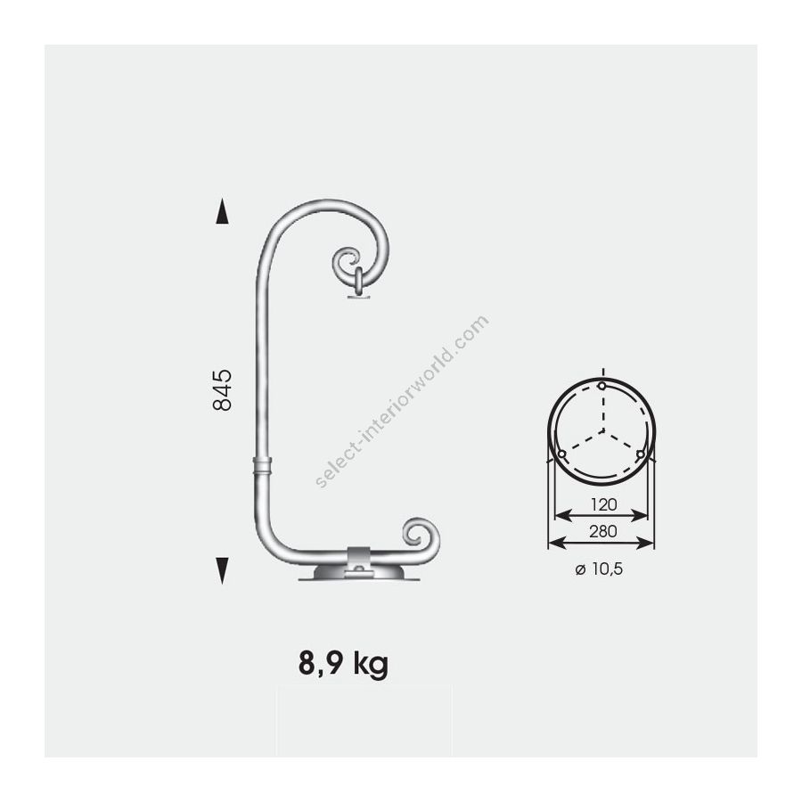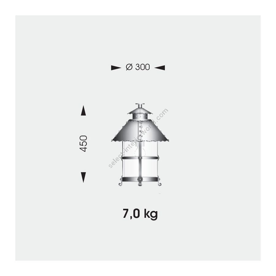 Diese Sockelleuchte von Robers (Deutschland) hat einen klassischen Laternenlook, wird aber durch ein einzigartiges Merkmal ergänzt. Jedes Design dieser Marke zeichnet sich durch exklusive Merkmale aus, die sich unter anderem von anderen abheben. Diesmal beschlossen die Designer, die klassische Laterne mit einem speziellen Arm auszustatten, der die für solche Lampentypen typische Säule ersetzt. Dieser hohe Arm hat auf jeder Seite einen anmutigen Haken, der obere Haken dient als Halter für die Laterne. Der Schirm aus mundgeblasenem Glas mit antikem Finish wird von den Eisenstangen eingerahmt und vom klassischen Dach mit Belüftungslöchern und einer Lüftungskappe abgedeckt. Die Lampe wird zu einer einzigartigen Dekoration und Lichtquelle für eine Terrasse oder einen anderen Raum.