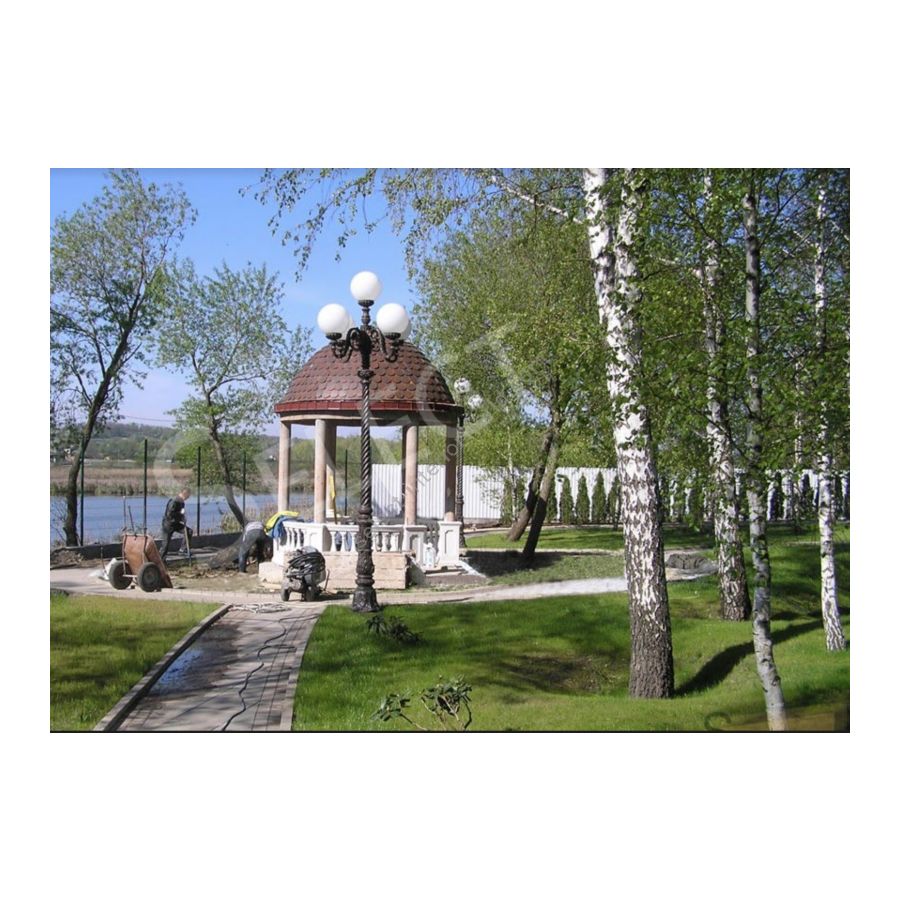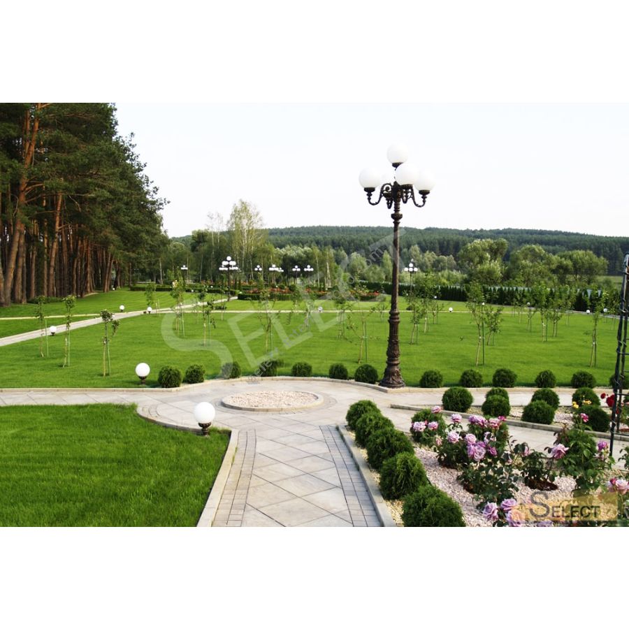 Diese elegante Ständerleuchte von Robers (Deutschland) wird nicht nur zu einer starken Lichtquelle, sondern auch zu einer hervorragenden Dekoration für Ihren Garten, Hof oder entlang der Auffahrt. Sie enthält 5 Geräte in einem. Die Lampe zeichnet sich durch eine reichhaltige Dekoration in jedem Teil aus: Das gleiche Konzept erkennt man am reich verzierten Sockel durch die Stangen bis zu den Schirmen. Sie alle enthalten handgefertigte florale Elemente wie Blütenblätter, Stängel und Knospen. Jede der fünf Lampen ist von einem Abschluss gekrönt. Die traditionelle Lampe fehlt, was diese riesige Konstruktion aufhellt. Die endgültige Befestigung ist in 10 Ausführungen erhältlich und wird manuell angewendet. Sie ist für Nachhaltigkeit und Wasserbeständigkeit vorgesehen.