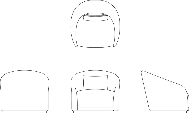 Der Rücken und die Armlehnen folgen einer reinen und durchgehenden Linie und passen sich mit Eleganz und Nüchternheit der zeitgenössischen Einrichtung an. Verfügt über einen tiefen Sitz und eine umlaufende Rückenlehne für unzählige Momente des Komforts. Das weiche Lendenkissen unterstreicht die reine und einhüllende Linie dieses Polsterstuhls. Beinhaltet einen Drehsockel aus Holz.