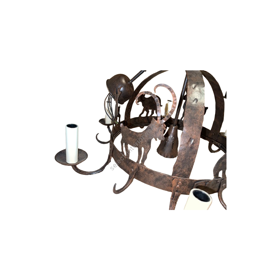 Robers Leuchten / Kronleuchter mit Silhouetten von Wildtieren / Rustikales Schmiedeeisen | Auf Lager