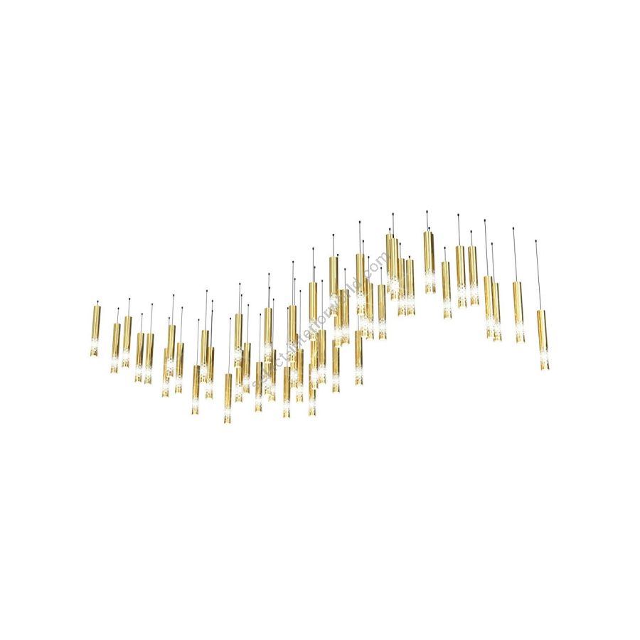 The Symphony collection unites elegance and modern innovation, composing a visual masterpiece of light and form. Each sleek crystal tube is finished with a metal nanocoating and intricate geometric cuts. Arranged in a cascading formation, they reflect and refract light in beautiful patterns, creating a true symphony of light.