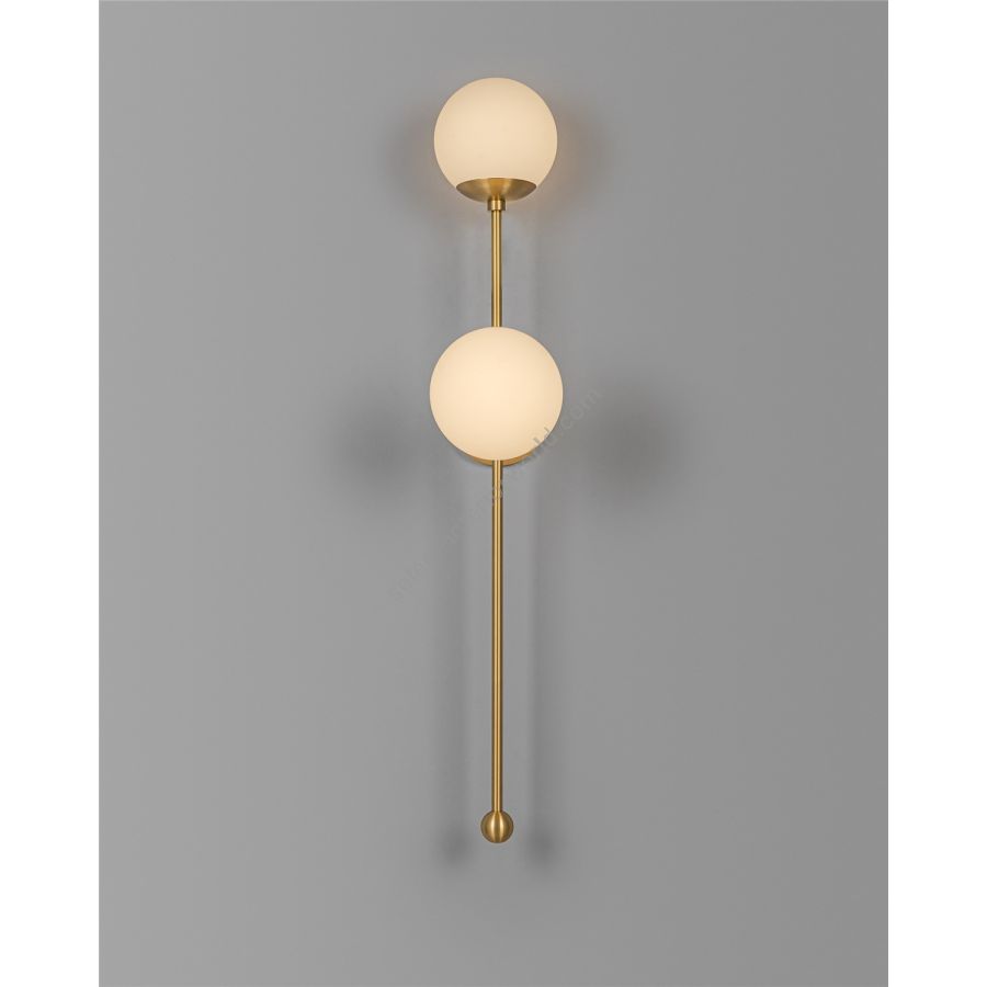 A pair of globes sit at right angles upon a brass sconce. Inspired by the design of classic brasserie lights, the minimalist composition allows the quality of the glass - available in three signature finishes - to shine.