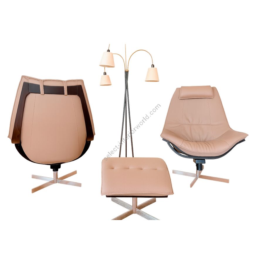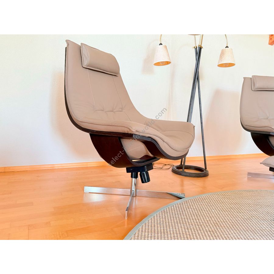 Werten Sie Ihr Interieur mit diesem exklusiven Set aus zwei modernen Loungesesseln und passendem Ottoman auf. Die sorgfältig gefertigten Sessel bieten Stil und höchsten Komfort. Die Polsterung aus hochwertigem Naturleder in einem edlen hellen Grau-Beige-Ton macht in jedem anspruchsvollen Ambiente Eindruck.