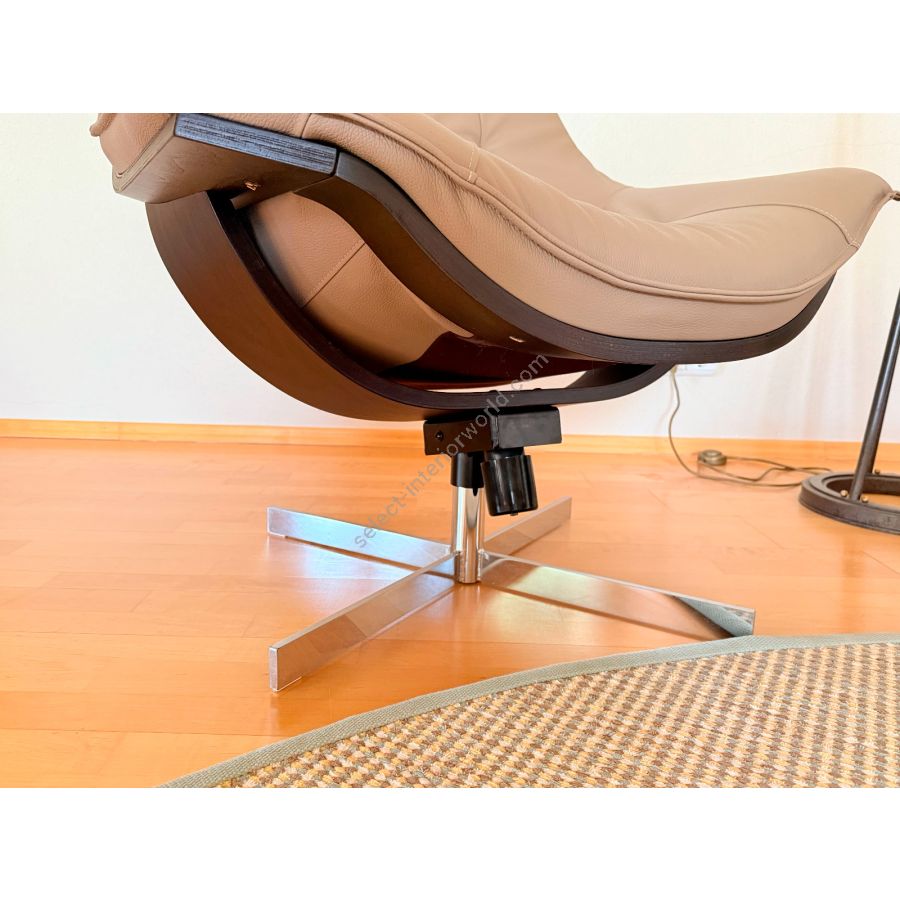 Roche Bobois /FLIGHT / hergestellt in Frankreich / Sidney-Leder und Naturholz / Set aus zwei Sesseln mit Pouf / Auf Lager