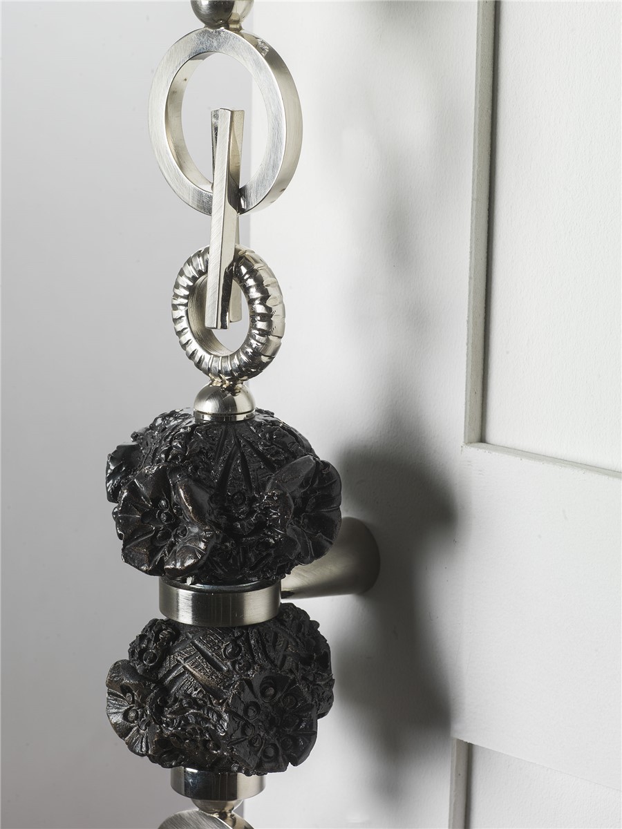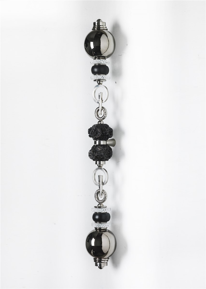 Nickel plated brass handle formed by spheres platinum plated majolica, sphere majolica engraved and crystal accents.