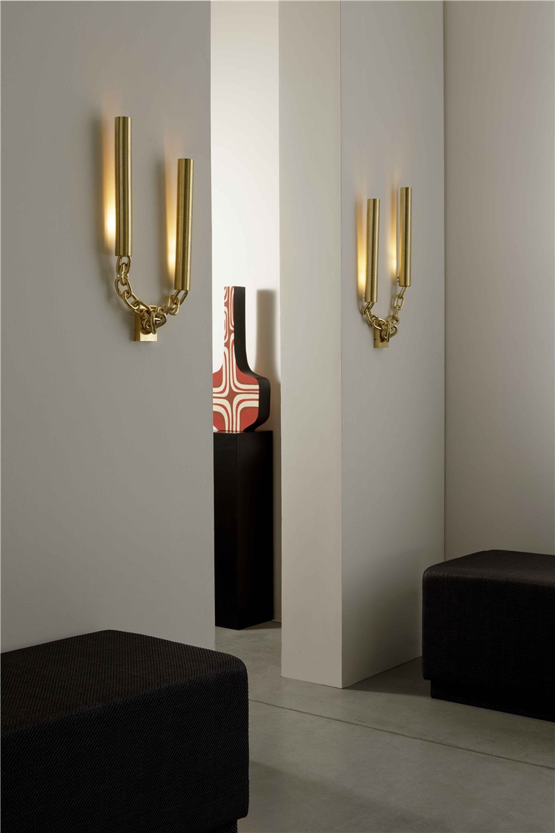 Gilded wall lamp. For pairs also available in left and right, to be specified on request.