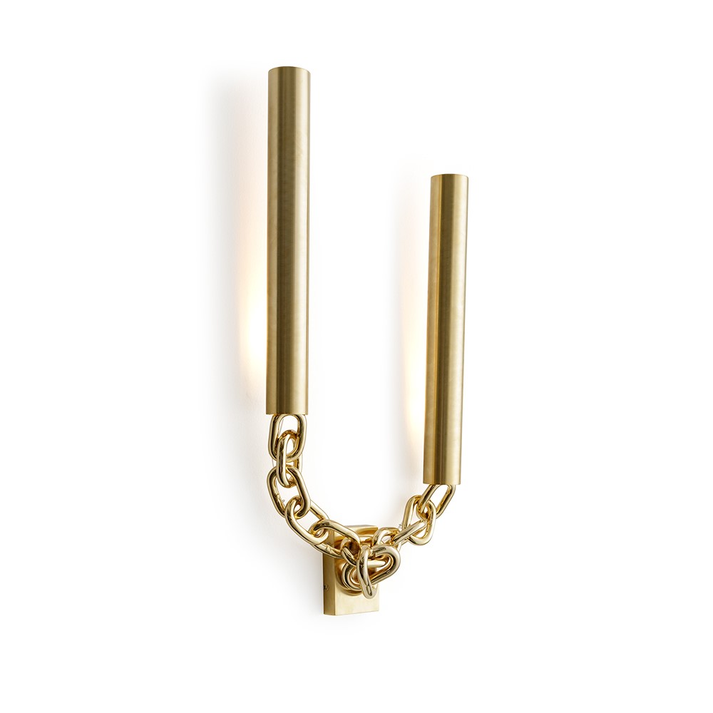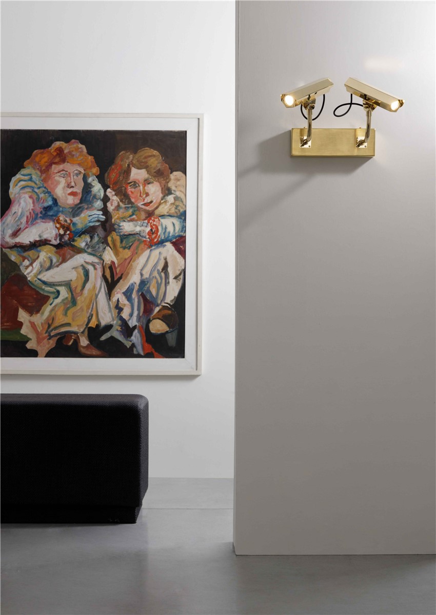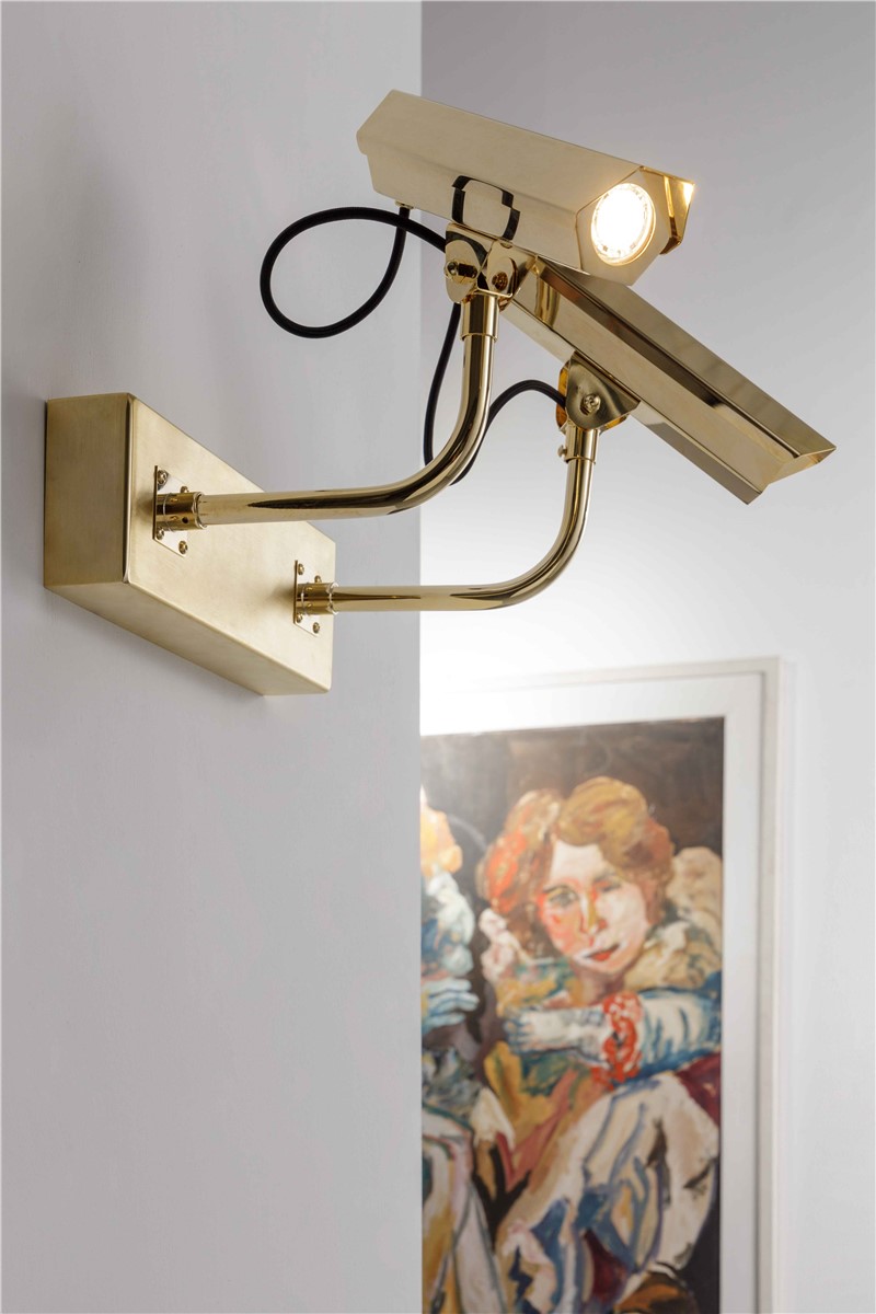 Wall lamp telecamera in gilded steel