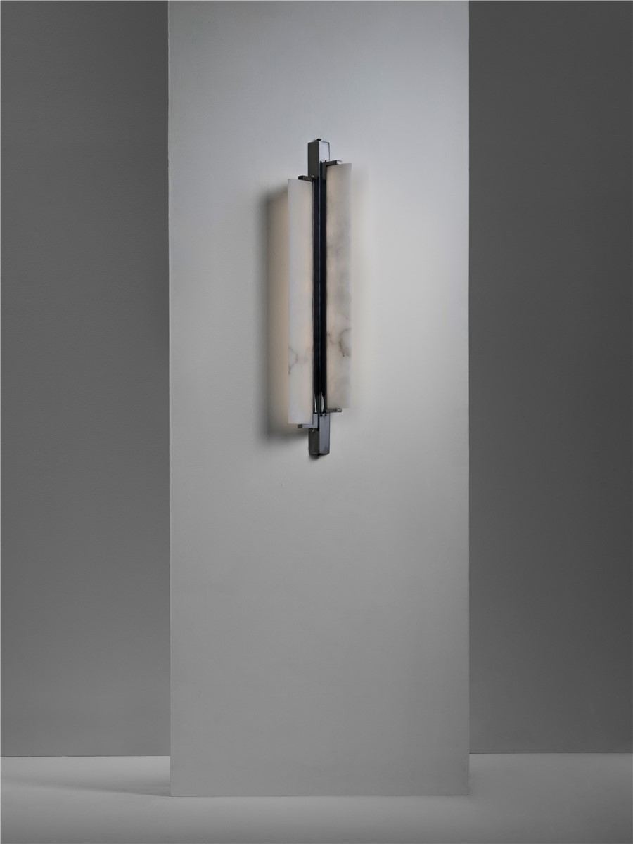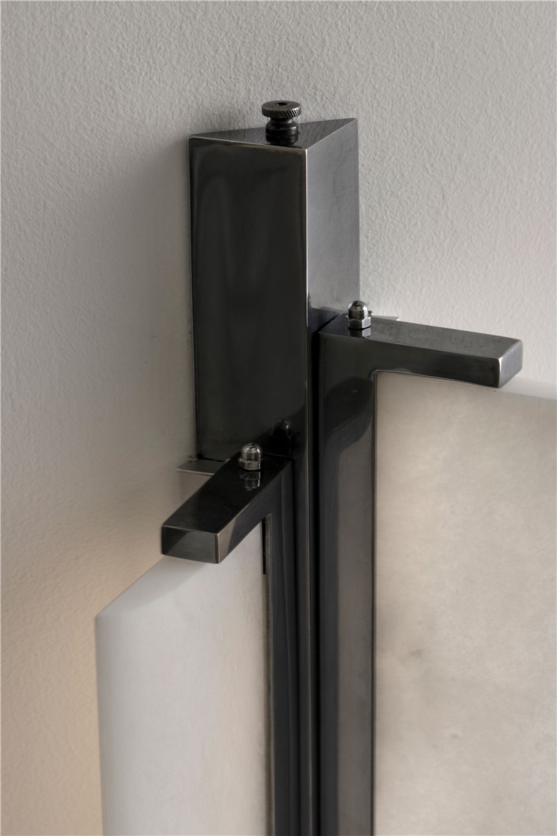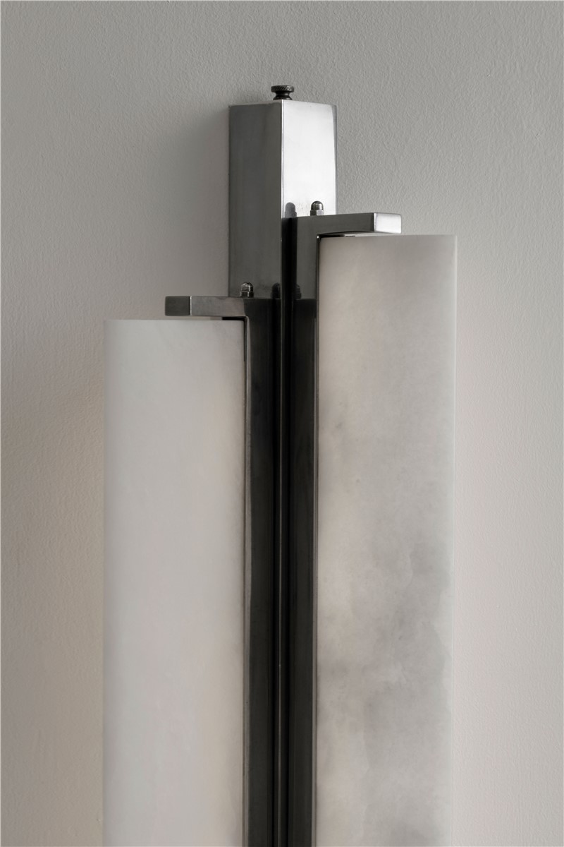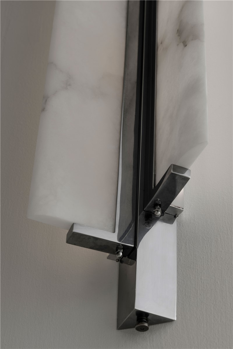 Wall lamp in white alabaster and structure in brass in pewter silver finish